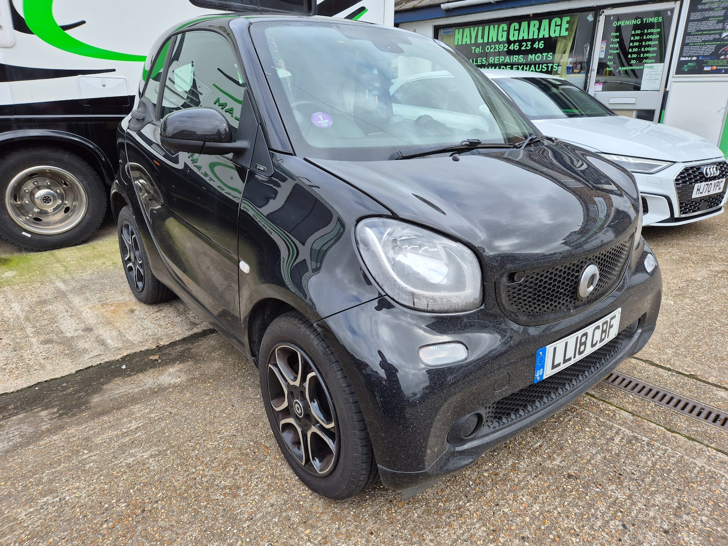 HaylingInsurance Group 3, 2 Previous Owners, AWAITING PREP This 2018 Smart ForTwo 1.0 Prime (Premium) Coupe 2dr Petrol Manual Euro 6 (s/s) (71 ps) has only 52029 miles on the clock and comes with a MOT that expires on 28/02/2026. This stylish coupe runs on petrol, is ULEZ compliant, and has 2 seats and 2 doors. The vehicle is equipped with features like 12 Volt Socket with Cover, MirrorLink, Smart MediaSystem, and 15in Alloy Wheels 5TwinSpoke Painted in Black with a HighSheen Finish. The black front grille adds a touch of sophistication to this sleek ride. Ideal for city driving, this Smart ForTwo combines practicality with style and is perfect for those looking for a compact and efficient vehicle. Features Include: , 12 volt socket with cover, mirrorlink, smart mediasystem, 15in alloy wheels 5twinspoke painted in black with a highsheen finish, black front grille, breakdown kit with air compressor and sealant, door mirror caps in tridion colour, door mirror with aspherically curved mirror glass on driver side, electric windows, panoramic roof with sun protection, radiator trim black, rear spoiler, rear windscreen heated with timer control, tridion safety cell in black solid paint, abs anti lock braking system, airbag kneebag for driver, airbags driver and passenger, airbags sidebags for driver and front passenger combined head and thorax, brake assist, central locking with radio remote control visual lockingverification signal, crash sensor for activation of hazard warning lights, crosswind assist, drive lock automatic door locking when the vehicle is in motion, esp electronic stability programme, hill start assist, isofix child seat attachment point on passenger seat, pedestrian impact protection front and side, rear windscreen wiper with intermittent wiper and automatic wipe wash function, seat belt reminder for driver and passenger, seat belts threepoint with seat belt tensioners and belt force limiters, automatic climate control, central locking with convenience closing features, centre console with pullout tray and double cup holder, comfort package, dashboard instruments with cockpit clock and rev counter, dashboard and door centre panel black fabric, folding key, gearshift lever trimmed in leather, grab handle for front passenger, heated seats for driver and front passenger, inside door opener matt chrome, instrument cluster with multi functional colour 3.5in display, interior lighting, loadlashing eyes in luggage compartment, lockable glove