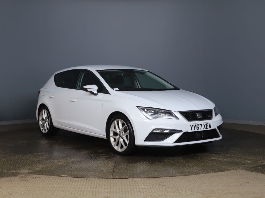 2 Previous Owners, This 2018 SEAT Leon TSI FR Technology boasts a clear vehicle history, offering you peace of mind. Powered by a 1.8 litre Euro 6 compliant petrol engine, this FR Technology model combines performance with modern technology. Youll appreciate the convenience of Full LED Headlights, SEAT Full Link Smartphone Integration which includes Mirror Link, Apple CarPlay, and Google Android Auto, and the Media System Plus with Bluetooth connectivity. Navigating and parking are made easier with the integrated Navigation System and Rear Parking Sensors. Experience impressive performance with a swift 060mph acceleration time of just 7.2 seconds, demonstrating how this Leon stands out from similar vehicles. The generous boot space ensures practicality for all your needs, making this SEAT Leon a well rounded choice for everyday driving and longer journeys..12V Power Supply in Centre Console, 17in Alloy Wheels Dynamic 302, 7 Airbags, ABS AntiLock Braking System TCS Traction Control System, Active Front Head Restraints and 3 Rear Head Restraints, Aluminium Front Door Sill Trims with FR Logo, BodyColoured Door Handles, BodyColoured Door Mirrors with Integrated LED Indicators, Boot Storage Net, Bumpers Exclusive FR Front and Rear, Cargo Rings in the Boot, Cruise Control, Dark Tinted Rear Windows, Driver and Passenger Seat Height Adjustment, Driver and Passenger Sunvisor with Covered and Illuminated Mirrors, Drivers Seat Lumbar Adjustment, Dual Zone Climate Control, ESC Electronic Stability Control and Tyre Pressure Warning Light Indicator, Electric Parking Brake Including Autohold Function, Electrically Folding Door Mirrors, ElectroMechanical Power Steering, Electronic Differential Lock System XDS, Emergency Tyre Repair Kit, Front Assist with City Emergency Braking, Front Seat Back Storage Pockets, Front Sports Seats, Front and Rear Electric Windows, Fuel Filler Flap linked to Central Locking, Full LED Headlights, Gearshift Indicator, Head Restraints Height Adjustable Front, High Centre Console, High Gloss Black B and C Pillars, Hill Hold Control, ISOFIX Points in Outer Rear Seats with Top Tether Anchorage Points, Illuminated Door Sill Plates, Illuminated Glovebox, Instrument Lighting with Brightness Control, Interior Chrome Detailing, Lights Left On Warning Buzzer, Low Fuel Warning Light, Lower Suspension 15mm, Media System Plus, Multi Coloured Ambient Lighting, MultiCollision Braking System, Navigation System, Outside Temperature Gauge, RPM Counter, Radiator Grille Frame in Chrome, Radiator Grille in Black, Reading Lights Front and Rear with Ambient Spots Boot Lights and Illuminated Foot Area, Rear Parking Sensors, Remote Central Locking with Deadlocks, SEAT Drive Profile, SEAT Full Link Smartphone Integration Mirror Link Apple CarPlay Google Android Auto, Seatbelt Reminder Front, Seats Passenger Lumbar Adjustment, Split Folding Rear Seats 6040, Sports Suspension, Steering Wheel FlatBottomed Perforated Leather with Red Stitching and FR Logo, Steering WheelMounted Gearshift Paddles, Storage Box Under Drivers Seat, Trip Computer, Two Remote Keys with Window OpenClose Door Mirror Folding and Boot Opening Functionality, Visual Twin Exhaust Pipes