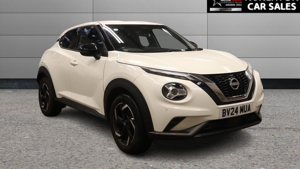 NuneatonInsurance Group 12, 0 Previous Owners, This 2024 Nissan Juke DIGT N Connecta presents an exceptional ownership proposition with its remarkably low mileage of just 3969 miles. As a single owner vehicle with a clear history check, this Euro 6 compliant Juke is powered by an efficient 1.0 litre petrol engine. The N Connecta trim level ensures a well equipped driving experience, combining practicality with modern features. With an impressive fuel economy of 47 miles per gallon, this Juke stands out for its cost effectiveness, offering a more economical choice for your daily journeys. Its low CO2 emissions further highlight its environmental consideration compared to many other vehicles in its class. This combination of low mileage, excellent fuel efficiency, and responsible emissions makes this Nissan Juke a smart and appealing option. Why Buy From Nuneaton Car Sales? •Multi AwardWinning Dealership •AA Approved Dealer •NO ADMIN FEES •12 Months AA Breakdown Cover •MultiPoint Vehicle Inspection •Free MOT if due within 6 months •Competitive Finance Available •Part Exchange Welcome •Click & Collect & Home Delivery Available •Same Day Drive Away on most vehicles Extra Peace of Mind Personalised walkaround videos available on request. All vehicles professionally prepared and valeted prior to sale. This vehicle is pricechecked daily against the UK market to ensure excellent value. Every effort is made to ensure vehicle information is accurate. Specification data may be supplied by a thirdparty source. If a particular feature is important to your purchase decision, please contact our sales team who will be happy to confirm. .17in Alloy Wheels Two Tone, 3 Adjustable Rear Head Restraints, 6 Speakers, 6040 Split Folding Rear Seats, 7in Full Colour TFT Screen Combimeter, ABS with EBD and Brake Assist, Active Ride Control, Active Trace Control, Airbag Driver, Airbag Front Passenger, Apple CarPlay and Google Android Auto, Auto Dimming Rear View Mirror, Automatic Climate Control, Automatic Hazard Signal and Emergency Stop Signal, Cabin Light Front and Rear, Cruise Control and Speed Limiter, DAB Radio, Door Handles Body Coloured, Drive Modes SportNormalEco, Driver and Passenger Sun Visor with Vanity Mirror, DriverPassenger and Rear Seatbelt Reminder, ESP Electronic Stability Programme, Electric Handbrake with Auto Hold Function, Electronically Adjustable Heated and Auto Folding Door Mirrors with Integrated Indicators, Emergency and Breakdown Call, Follow Me Home Headlights, Front Armrest, Front Doors with Bottle Holders, Front Parking Sensors, Front and Rear Electric Windows with One Touch Driver Window, Grab Handles Passenger and Rear, Height Adjustable Driver Seat, Height Adjustable Seatbelts, High Beam Assist, Hill Start Assist, Intelligent Emergency Braking with Pedestrian and Cyclist Recognition, Intelligent Key and Start Push Button with Walk Away Lock and Approach Unlock Functions, Intelligent Lane Intervention, Interior Chrome Door Handles, LED Daytime Running Lights, LED Headlights, LED Rear Fog Light, LED Rear Lights, Lane Departure Warning, Leather Shift Knob, Leather Steering Wheel, Luggage Board, Luggage Space Lighting, Monoform Sporty Seats, Multifunctional Steering Wheel, NissanConnect 8in Touchscreen Entertainment System, NissanConnect Navigation with TomTom Traffic, NissanConnect Services, Outside Temperature Sensor, Power Steering, Puncture Repair Kit, Rain Sensing Wipers, Rear Coat Hanger Drivers Side, Rear Console USB Port, Rear Parking Sensors, Rear Privacy Glass, Rear Spoiler, Rear View Camera, Side and Curtain Airbags, Steering Wheel Mounted Gearshift Paddles, Syntech Leather Knee Pad, TPMS Tyre Pressure Monitoring System, Telescopic Steering Wheel Adjustment, Three Blink Turn Signal, Traffic Sign Recognition, Two Cup Holders in the Centre Console, Two Rear ISOFIX Child Seat Anchorage Point with Top Tether, USBAUX Socket Input and Bluetooth Connectivity, VDC Vehicle Dynamic Control, Welcome Light and Console Tray Ambient Lighting, WiFi and Voice Recognition