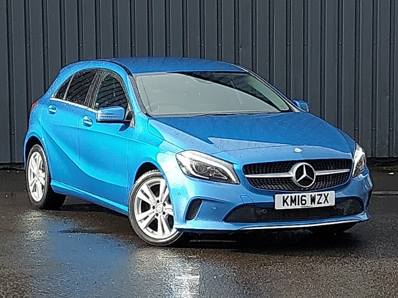 GlasgowInsurance Group 18, 8" colour display screen, Bluetooth interface for hands free telephone, Attention assist, Collision prevention assist plus, DYNAMIC SELECT with a choice of driving modes (ECO, Comfort, Sport, Sport+ and Individual), Park assist pilot with front and rear park assist, Reversing camera, Speed sensitive parameter assisted steering, Comfort suspension, Auto dimming driver's door mirror, Auto dimming rear view mirror, LED Headlights, Electric folding door mirrors, Electric adjustable heated door mirrors, Diamond radiator grille with black pins with one louvre in silver + chrome insert, Daytime running lights, Auto MercedesBenz child seat recognition sensor, Dual zone automatic climate control, Artico manmade leather upholstery, Heated front seats, Stowage Pack A Class, Seat comfort pack A Class, Keyless ignition, 17" 5 twin spoke alloy wheels