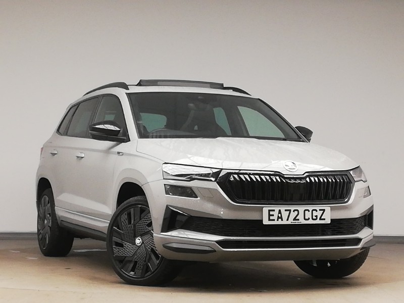ChesterfieldInsurance Group 19, Panoramic sliding sunroof, Amundsen satellite navigation with 8" touchscreen display with maps Europe, WLAN and web radio, DAB radio with Bluetooth, USB connection, SmartLink wireless for Apple and wired for Android, Voice Control, Front and rear parking sensors with reversing camera and audible signal, Cruise control + speed limiter, Driver fatigue sensor, Drive mode selector, Dual zone climate control, Heated front seats, Heated steering wheel, Auto dimming rear view mirror with light and rain sensors, Auto headlights, LED Headlights, Keyless entry and start/stop, Light Pack Karoq, Parking pack Karoq
