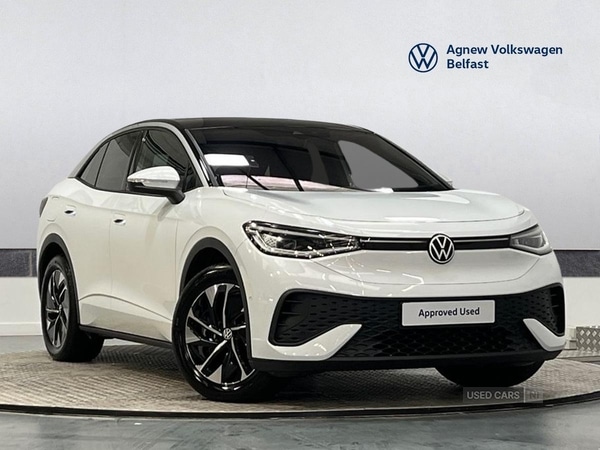 Belfast0 Previous Owners, *** From Monday 23 February to Monday 9 March £1,000 deposit contribution available on used vehicles up to 12months old when financed through VWFS PCP *** Volkswagen ID.5 Match 77kWh Pro 286PS in Glacier White with black roof Interior Style Plus with power adjustable front seats with memory, 30 Colour interior ambient lighting, Heated steering wheel Infotainment Pack Plus with Discover Pro navigation system, wireless phone charger, augmented reality head up display, Harman Kardon sound system Approved Used with VW warranty until June 2028