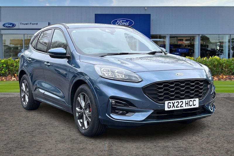Insurance Group 20, 12.3 digital colour instrument cluster, Ford easy fuel, Ford SYNC 3 with 8 TFT LCD touchscreen, App Link, andriod auto/apple carPlay, emergency assistance and navigation with Ford pass connect, Front and rear parking sensors, Hands free power tailgate, Lane keeping aid with lane departure warning, Power assist steering, Rear view camera, Selectable drive modes, Service interval indicator, Auto headlamps with high and low beam, Black roof rails, Body colour bumpers, Day/night rear view mirror, Front LED fog lamps, Large rear roof spoiler, LED daytime running lights, LED rear lights, Power folding, electrically adjustable and heated door mirrors with puddle lights, Power front/rear windows with global close, Quickclear heated windscreen, Rain sensing wipers, Rear privacy glass, Rear side wing doors, Rear wiper, ST Line body styling kit with unique front and rear fascia and bumper, rear painted diffuser, front painted skid plates, dark mesh upper grille, ST Line front scuff plates, Third brake light, Twin exhausts, 2nd row sliding seats with 60:40 split, Alloy pedals, Centre console with electronic parking brake, Dark headlining and pillars, Electronic automatic temperature control (EATC), Flat bottomed leather steering wheel in sensico with red stitching, Front and rear head restraints, Partial premium touch Sensico with black cloth inserts and red stitching, Rear centre head restraint, Single front passenger seat, Sports seats, ST Line front and rear floor mats, 3x3 point