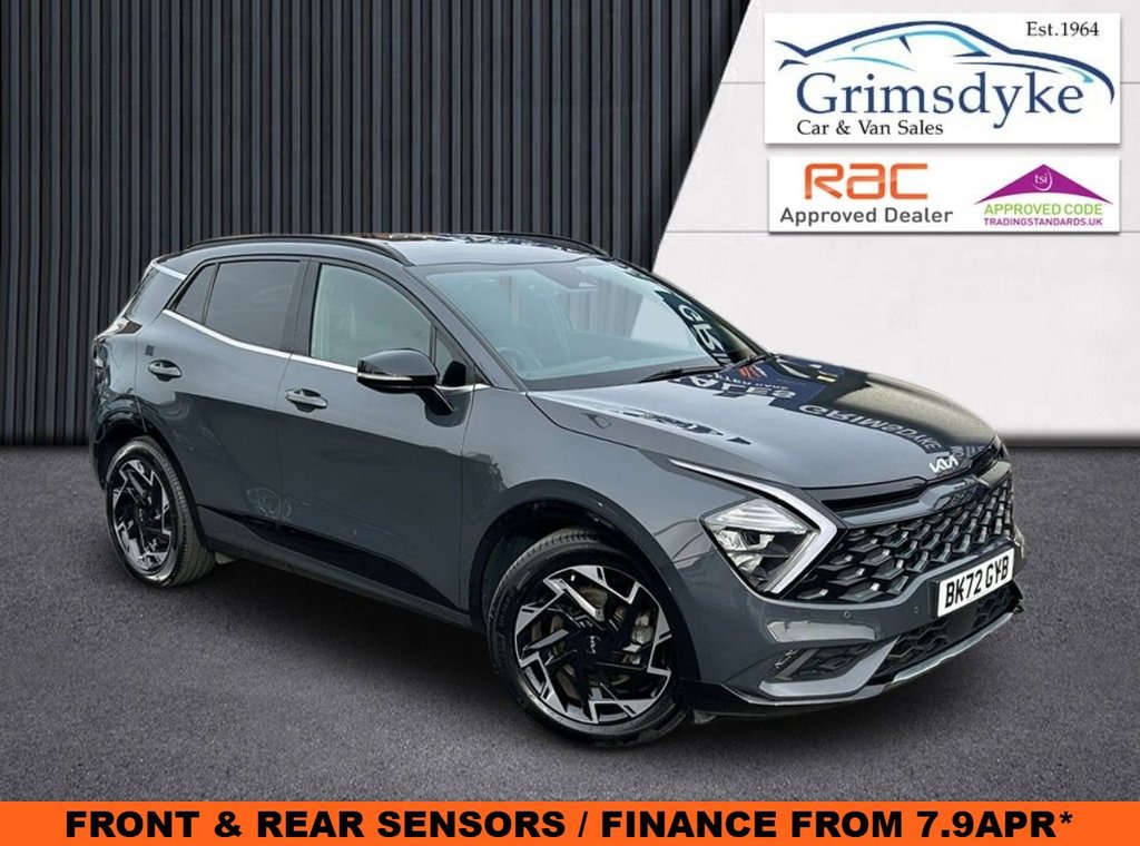 Insurance Group 18, 0 Previous Owners, WELCOME TO GRIMSDYKE CAR SALES We are proud to present this stunning, Kia Sportage GTLine SUV, Petrol Manual, finished in Dark Penta Metal Grey . This example has been well looked after, comes with a with a new service and MOT at the point of sale, along with an RAC BuySure inspection and RAC Platinum warranty — offering complete peace of mind for its next owner. Standout Features Apple CarPlay / Android Auto Rear Privacy Glass Rear Parking Camera Cruise Control Front and Rear Parking Sensors Key Information One Owner RAC BuySure Inspected RAC Platinum Warranty RAC Roadside Assistance 12 Months MOT Fully Serviced for Sale Number of Keys 2 PCP/HP Finance Available From 7.9% APR* (You can check your likelihood of an approval without affecting your credit score on our website) RAC BUYSURE & WARRANTY Grimsdyke Car Sales is independently RAC inspected & Approved dealership, we ensure that every vehicle we sell meets the highest standards. Each of our vehicles benefits from: An RAC BuySure 82Point Inspection A minimum 3month comprehensive warranty Free RAC Roadside Assistance (Roadside, Recovery, AtHome, and Onward Travel) HPI & Data History Check for complete peace of mind. (For additional protection, we are pleased to be able to offer our customers RAC Platinum Warranty Extensions, for 12, 24, 36, or even 48 months! All our warranties also include Free RAC Roadside Assistance for the duration of their warranty. Please contact us for more information..Dark Penta Metal, Front & Rear Parking Sensors , Reversing Camera System, Android Auto and Apple Carplay, Rear Privacy Glass, 12.3in Display with Navigation, 12v Power Socket Front Centre Fascia and Luggage Compartment, 4.2in Supervision Colour Cluster Display, 6Speaker System, Android Auto and Apple Carplay with Voice Control, Bluetooth with Music Streaming, Free 7year Kia Connect Services UVO, Rear USB Charging Port, USB Port for Connection of a Media Device, 19in Alloy Wheels, AllRound Electric Windows with Driver and Front Passenger Auto UpDown Function, Backlite Glass Heated with Timer, Body Colour Door Garnish, Body Coloured Door Mirrors, Body Coloured Exterior Door Handles, Body Coloured Radiator Upper Garnish, Body Coloured and Black Bumper with Silver Accents, Door Courtesy Lamp, Electrically FoldingAdjustable and Heated Door Mirrors with LED Indicators, Glossy Black Radiator Grille, Glossy Black Side Sill and Wheel Arch Mouldings, Locking Wheel Nuts, Rear Privacy Glass, Rear Spoiler, Satin Finish Beltline, Silver Roof Rack, TMK Tyre Mobility Kit, 2nd Row Personal Lamp, 3 x Passenger Assist Grips, 402040 Split Folding Rear Seats, Allround Height Adjustable Headrests, Aluminium Pattern Finish Centre Fascia and Door Garnish, Auto Window Defogger, Centre Console Storage Box, Climate Control Three Zone, Coat Hooks Rear, Cupholders in Rear Armrest, Drink Holder at Centre Armrest, Driver and Passenger Sunvisors with Vanity Mirror and Illumination, Drivers Seat Manual Height Adjuster, Electronic Chromic Mirror, Front Seatback Pockets, Front and Rear Door Storage, Glovebox with Illumination, Headlining Black, Luggage Area Load Cover, Luggage Lamp, Luggage Net Hooks, Metal Paint Interior Door Handles, Overhead Console Lamp, Rain Sensing Aero Blade Wiper, Rear Ventilation Duct, Seats Drivers Lumbar Support, Sports Pedal, Steering Wheel DShaped Sports Leather with Perforated Inserts and GTLine Logo, Steering Wheel Mounted Audio Controls, Tilt and Telescopic Steering Wheel Adjustment, Dark Penta Metal, Automatic Headlight Control, LED Daytime Running Lights, LED Front Fog Lamps, LED Headlamps Low and High Beam MFR Type, LED High Mounted Stop Light, LED Rear Combination Lamp, Power Steering, Advanced AntiTheft System including Immobiliser and Alarm, AllRound 3Point Seatbelts, AntiLock Braking System ABS, Child Safety Rear Door Locks, Chrome Front and Rear Skid Plate, Cruise Control with Speed Limiter, DBC Downhill Bra