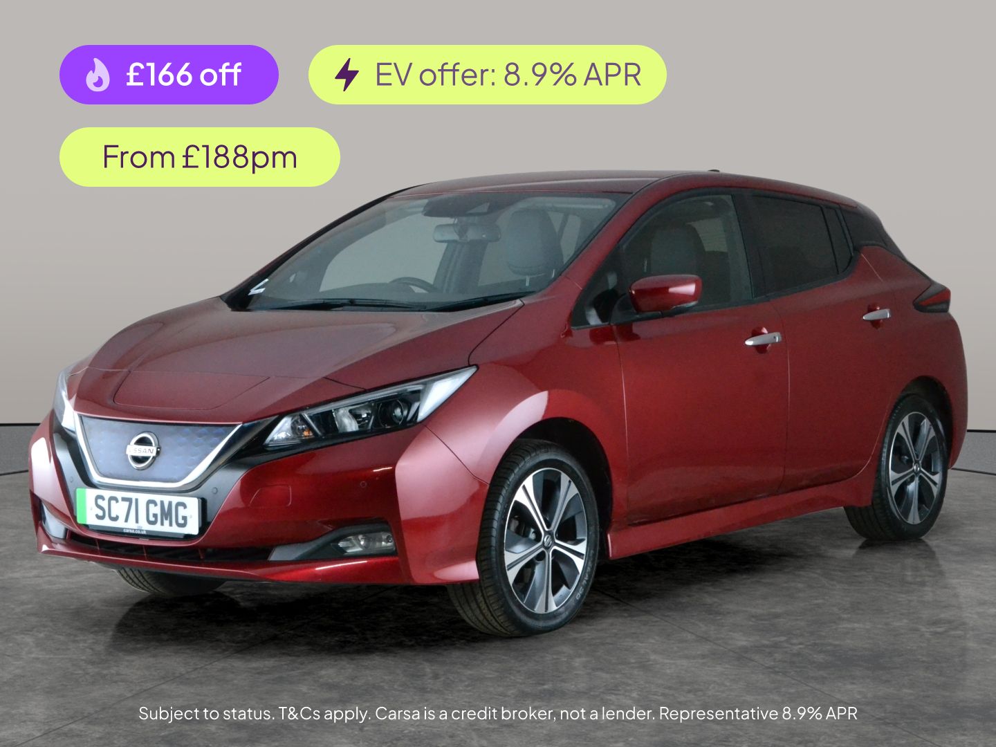 1 Previous Owner, Experience the future with the Nissan Leaf, finished in a striking red. Enjoy optional extras like Apple CarPlay, Sat Nav, and the Heat Pack for added comfort. With half leather seats, keyless start, and 17in alloy wheels, this Leaf stands out from the crowd. Stay safe on every journey with Intelligent Lane Intervention, Blind Spot Assist, Lane Departure Warning, and cruise control. Air conditioning keeps you cool, and a charging lead is included for all your electric adventures. 4 services recorded, last serviced on 12/02/2026 at 57,831 miles. MOT to 14/02/2027. Visit our website for service history, online valuation, full vehicle specification plus multiple images. Any feature/option specified here is from 3rd party data. We cannot guarantee the accuracy of any specification supplied by a 3rd party. We recommend that you physically check the specification of the vehicle on site prior to purchase. This information does not form part of the buying contract. Terms & Conditions apply. We have over 2,000 cars available from our 10 national branches, check our website to see all our stock. Our Trustpilot rating is 4.4/5 with over 9,000 reviews.