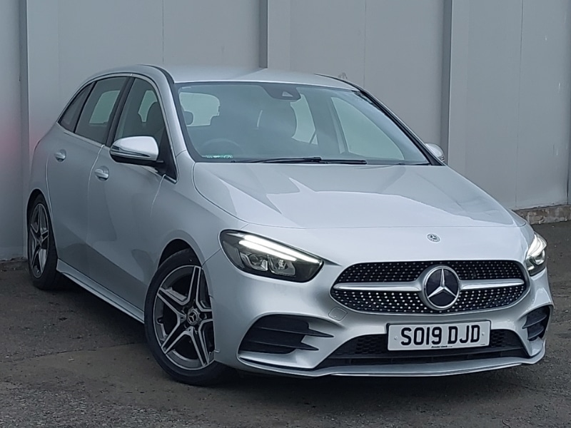 KirkcaldyInsurance Group 19, 180 degree reversing camera with parking guidelines, 7 inch display in instrument panel, 7 inch touchscreen media display, Cruise control + speed limiter, DYNAMIC SELECT with a choice of driving modes (ECO, Comfort, Sport, Sport+ and Individual), Easypack tailgate, Harddisk navigation, MBUX multimedia system with DAB digital radio and touchpad including satellite navigation, AMG body styling front apron, rear apron and side skirts, Headlamp assist automatic headlamp activation, Rain sensing windscreen wipers with two sensitivity settings, Air conditioning Two zone thermotronic luxury automatic climate control with display, Artico manmade leather/Microfibre Dinamica upholstery with red contrast stitching, Seat comfort pack B Class, Light and sight package B Class, 18" AMG 5 twin spoke design alloy wheels painted in titanium grey with high sheen finish