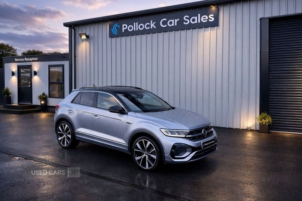 Castlerock0 Previous Owners, 2023 Volkswagen TRoc Style DSG is in excellent condition, with a very high specification and a full VW Service History.It has £1,940 of factory fitted extras, including:19" Misano Wheel UpgradeColour Reverse CameraErgo Active Massage Front Seat with Lumbar SupportHeated SeatsThe Volkswagen service history is full and comprehensive including the following:9,537 Miles 26/03/2024 Volkswagen Oil Service, Inspection18,397 Miles 18/03/2025 Volkswagen Oil Service, Inspection27,181 Miles 01/03/2026 Pollock Oil Service, InspectionTRoc Style has the following specification includes:1.5 TSI 150BHP Engine7 Speed Automatic GearboxPyrite Silver with Gloss Black Roof19" Misano Alloy wheelsFront & Rear Parking sensors with Volkswagen Park Pilot digital displayColour Reverse CameraErgoActive Massage Front Seat with Lumbar SupportHeated SeatsHeight Adjustable Drivers & Passenger SeatsBlack cloth with Leather trimmed seat bolstersVirtual Cockpit Digital DisplayMultimedia system with CD, SD, USB & Aux inputsApp Connect Smartphone connection for Apple Car Play / Android Auto Colour 3D Satellite NavigationDAB/AM/FM Radio Bluetooth handsfree & Bluetooth Audio Radar Adaptive Cruise Control Xenon Headlights with LED Daytime running LightsLeather Multifunction Steering wheelCentre Arm Rest Gloss Black Grilles with chrome trimDual Zone climate controlWith Full VW Service History and many factory upgrades this is a unique car, it is an excellent example and is supplied with two keys and 6 Months Comprehensive Warranty. We consider all part exchanges and offer competitive rates of finance. Get in touch today to arrange a test drive and viewing.Discover Your Next Vehicle at Pollock Car Sales!This exceptional vehicle is freshly serviced, meticulously inspected, and ready to hit the road with confidence. It comes with a minimum of 6 months comprehensive warranty (3 months for vehicles 10 years old or over 100,000 miles) for complete peace of mind.We offer competitive finance rates tailored to your needs and welcome all part exchanges. Arrange your test drive and viewing today to experience it for yourself!Why Choose Pollock Car Sales?Over 25 years of combined expertise in vehicle sales and sourcing.Every vehicle is HPI checked for condition and mileage, ensuring transparency and trust.Backed by a 6month warranty from our trusted warranty partner. Contact us for more details!Convenient