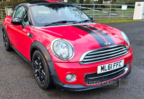 BallymenaInsurance Group 18, 2011 MINI COOPER COUPE2 SEATER1598 CC PETROL 120 BHP6 SPEED MANUAL GEARBOXMOTED TO 28 FEBURARY 202791000 MILESALLOY WHEELSHALF LEATHER INTERIOR MULTIFUNCTION STEERING WHEEL MEDIA CENTER ELECTRIC WINDOWS ELECTRIC MIRRORS REMOTE CENTRAL LOCKING ON BOARD COMPUTER CD PLAYER IN GOOD CONDITION GOOD DRIVING CARTRADE IN OR PART EXCHANGE CONSIDEREDCREDIT CARDS AND BANK TRANSFER ACCEPTED £2995STRICTLY NO LAST PRICE AVALIABLE BY PHONE UNTIL THE CAR HAS BEEN SEEN OVER 100 OTHER CARS IN STOCK CARS ARE IN BALLYMENA BT423HT CALL 0 7 5 7 2 0 4 7 4 4 6 FOR ANY MORE INFORMATION ANSD A VIEWING APPOINTMENT OPENING HOURS 10 TO 6 MONDAY TO SATURDAY. ANY OTHER TIME STRICTLY BY APPOINTMENT CLOSED SUNDAYS**APP VERIFIED TRADER**