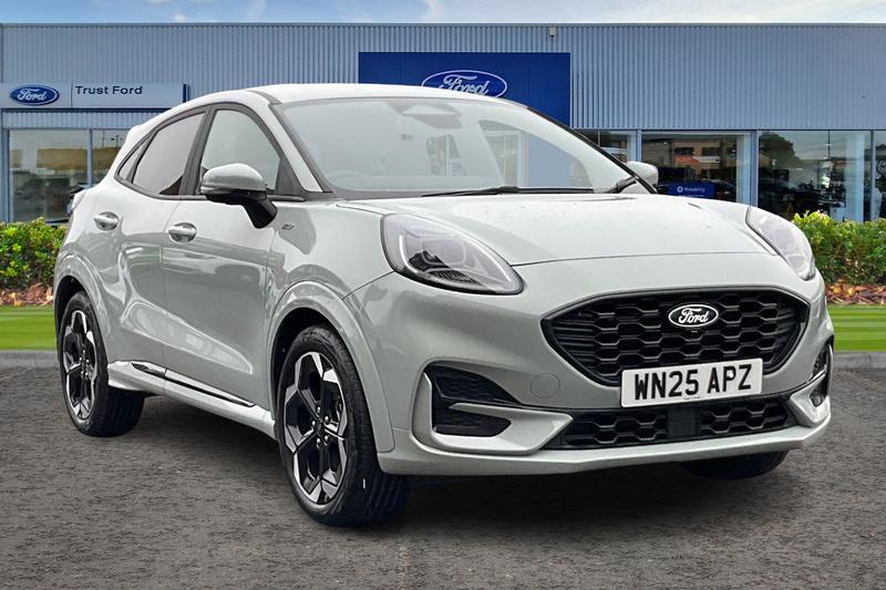 Insurance Group 17, Driver alert system, Emergency call service, Ford easy fuel, Full digital 12.8 instrument cluster, Lane keeping aid, Power assist steering, Power lift tailgate, Selectable drive modes(Normal, Eco, Sport, Slippery and Trail), Speed sign recognition, Wireless charger, Auto dimming interior rear view mirror, Automatic headlights with rain sensing wipers and auto high beam, Front fog lamps, LED daytime running lights, LED rear lamps, LED third brake light, Power foldable heated door mirrors with puddle lamps and puma logo protection, Quickclear heated windscreen, Rear privacy glass, Rear side wing doors, Rear wiper, STLine X body styling kit, 3 seat bench in 2nd row, Centre console with armrest and stowage, Electronic automatic temperature control (EATC), Ford megabox extended bootspace, Front and rear head restraints, Front floor mats, Manual 4 way driver seat adjust with lumbar adjustment, Manual 4 way passenger seat with lumbar support, Single front passenger seat, STLine X Premium synthetic leather upholstery, 3 rear seatbelts, Child safety lock, Electronic stability control (ESC) and hill start assist, Precollision assist with autonomous emergency braking, pedestrian/cyclist detection & postcollision braking, Tyre pressure monitoring system (TPMS)