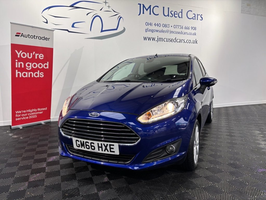 GlaInsurance Group 11, 1 Previous Owner, The Ford Fiesta 1.0T EcoBoost Titanium Hatchback 5dr Petrol Manual Euro 6 is a very good small car overall — its economical, practical and enjoyable to drive. The 1.0 EcoBoost engine delivers impressive fuel economy (around 6566 mpg combined) with low CO? emissions, and performance is pleasing for everyday driving with brisk acceleration for its size. The Titanium trim adds useful tech, comfort and safety features, and the Fiestas handling is typically nimble and confident around town or on country roads. AwardWinning Family Business Premium Customer Service & Aftercare Located just off Junction 24 of the M8 in Glasgow, we offer an impressive range of quality used cars, all displayed in our indoor showroom. Each vehicle is meticulously prepared to meet our high standards, ensuring youre driving away with complete confidence. We welcome part exchanges and offer tailored finance and warranty packages to suit every budget. Need help choosing the right car? Our team is here to provide expert advice and support. Cant make it in person? No problem! We offer live video walkarounds of our cars upon request, and you can complete all finance agreements securely online. For more details or to arrange a viewing, contact Martin today. JMC USED CARS WWW.JMCUSEDCARS.CO.UK glasgowsalesjmcusedcars.co.uk.1 YEAR MOT, BLUETOOTH, £20 ROAD TAX , LOW INSURANCE GROUP, LOW RATE FINANCE AVAILABLE, Deep Impact Blue, 16in Alloy Wheels 10 Spoke, Ambient Lighting, Automatic Headlights Rain Sensing Wipers Auto Dimming Rear View Mirror, Bumpers Front and Rear Body Colour, Centre Console, Courtesy Light Front with Map Reading Lights, Courtesy Light Overhead with TheatreStyle Dimming, Courtesy Light Rear, Cruise Control, Door Handles Body Colour, Door Mirrors ElectricallyOperated and Heated PowerFoldable with Integrated Side Indicators Body Colour Housings and Puddle Lights, Double Locking, Drivers Seat Lumbar Support, EATC Electronic Automatic Temperature Control Climate Control, EPAS Electric Power Assisted Steering, ESP Electronic Stability Programme, ElectricallyOperated Front Windows with One Touch, Emergency Brake Warning Automatic Hazard Warning Lights, Engine Immobiliser Passive Antitheft System, First Aid Kit and Warning Traingle Storage, Floor Mats Front and Rear Velour, Footwell Lights Driver and Passenger, Ford Easy Fuel Capless Refuelling System with Misfuel Inhibitor, Front Fog Lights Chrome Bezel Rings, Front Lower Grille Insert Black, Front Upper Grille Chrome Finish Surround, Front Upper Grille Insert Chrome bars, Gearshift Knob Leather, Glovebox Illuminated, Halogen Projector Headlights with Silver Surrounds and LED Daytime Running Lights, Headlights Courtesy Delay, HighMounted Rear Brake Light, Hill Start Assist, IPS Intelligent Protection System, Interior Door Lever Chrome Finish, LeatherTrimmed Handbrake, Loadspace Compartment Light, Loadspace Floor Carpet, Locking Wheel Nuts, MyKey, Perimeter Alarm, Pollen Filter, Power Point Socket 12 V, Quickclear Heated Windscreen, Rear Lights LED Night Signature, Rear Privacy Glass, Rear Spoiler Body Colour, Remote Central Locking with Two Flip Keys, Removable Package Tray, Seats Drivers 4Way Manual Adjustment, Sony CD Radio with DAB and Ford Sync, Steering Column Rake and Reach Adjustment, Steering Wheel 3 Spoke Leather Trimmed, Suspension Front Stabiliser Bar, Tailgate Handle Body Colour with Chrome Finisher, Tailgate WashWipe, Trip Computer, Tyre Pressure Monitoring System, Tyre Repair Kit