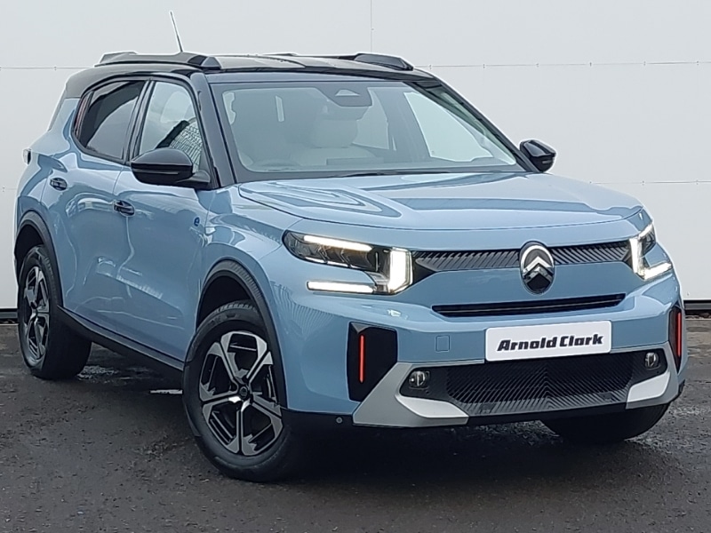 KilmarnockWireless Smartphone charger, Reversing camera, Rear parking sensors, Connected services, Cruise control + speed limiter, Active lane departure warning system, Cabin temperature preconditioning, Remote charging, Fast charging DC 100kW, Advanced comfort suspension with progressive hydraulic cushions, Citroen connect nav with DAB radio, 6 speakers, 10.25" capacitive touchscreen, wireless mirror screen, apple carplay/android auto and bluetooth, Automatic activation of hazard warning lights, Automatic headlights, Dark tinted tailgate and rear side windows, Heated acoustic windscreen, Safety pack C3 Plus and Max, Heated front seats, Visibility pack C3 Plus and Max, Heated steering wheel, Automatic air conditioning, Advanced comfort front and rear seats, Single front passenger seat, Parcel shelf, Padded fabric armrests in front and rear doors with labels, Map pockets in back of driver and front passenger seats with additional pocket for smartphone storage, LED front lighting panel with map reading lights, Leather effect steering wheel with gloss black and chrome elements and integrated audio/telephone/cruise control/speed limit controls, ISOFIX mounting on outer rear seats with top tether and labels indicating fixing points, High console with armrest and closed storage, Height adjustable front head restraints, Front seats adjustable with forward back slide and adjustable backrest, Fixed boot light, Driver's seat height adjustment, Cloth/leather effect upholstery, Closed glove box, Chrome effect interior door handles, Central storage with 2 cupholders, Bag support hook in boot, 12V socket on console, 4x anchoring rings on boot, 1 litre bottle storage in front and rear door pockets, Tyre pressure monitoring system, Monotone horn, Hill start assist, Front side airbags + front/rear curtain airbags, Front passenger airbag deactivation, ESP with anti skid system, Electric parking brake, Driver and front passenger seatbelts with pyrotechnic pretensioners and force limiters, Child locks on rear doors, ABS, Immobiliser, Connected anti theft alarm (Volumetric and perimetric with tilt sensor), AVAS Approaching vehicle alert system, Automatic door and boot locking when moving off with automatic unlocking in case of impact, Grey decor on front doors, Grey decor on dasbhboard, 2 side air vents and 2 central air vents on dashboard, Electric power steering, eCall emergency call system, etoggle gear selector, Citroen connect box emergency and assistance system, 1x USBC