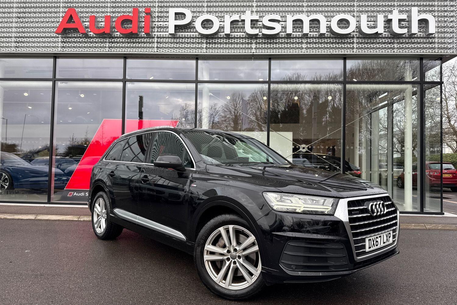 Insurance Group 36, 1 Previous Owner, Franchise Approved, 7 SEATS, S LINE PACKAGE, FRONT SPORT SEATS, MMI NAVIGATION PLUS WITH MMI TOUCH, HIGH BEAM CONTROL, MULTI FUNCTION STEERING WHEEL, HILL HOLD ASSIST, CRUISE CONTROL, POWER TAILGATE , ISOFIX, LANE DEPARTURE WARNING, DAB RADIO, TINTED WINDOWS PRIVACY GLASS, FRONT AND REAR PARKING SENSORS, SPLIT FOLDING REAR SEATS, LIGHT & RAIN SENSOR, AUTO DIMMING REAR VIEW MIRROR, SELECTABLE DRIVING MODES, PUSH BUTTON START, NIGHT BLACK WITH LEATHER/ALCANTARA UPHOLSTERY, 20'' 5 PARALLEL ALLOY WHEELS, DELUXE 4 ZONE CLIMATE CONTROL, POWERED/HEATED FRONT SEATS WITH LUMBAR SUPPORT, LED HEADLIGHTS WITH DYNAMIC REAR INDICATORS, VOICE ACTIVATED CONTROLS AND MUCH MORE.All Audi Approved used cars are offered with a 12month warranty and roadside assistance.Portsmouth Audi are delighted to offer this Audi Q7 in Night Black over Alcantara/ Leather and has completed just 55572 miles., We are proud to be part of the Harwoods group, a family run business established in 1931. With four Approved Audi retailers within our group, we have access to over 400 vehicles. If this isn't the right car for you, please contact us and we will find it. Our group stock has spec to include Sunroof, Leather, Heated Seats, Apple Car Play, Heated Steering Wheel, Reverse Camera, Rear Entertainment, Towbar, 360degree camera, Comfort & Sound Pack, Tech Pack, Panoramic Sun Roof, Tow Bar, Black Pack, Air Suspension, Apple Carplay, Adaptive Cruise, Massage Seats, Refrigerator, AWD, Technology Pack, Head up Display, Vorsprung, Technik, Black Edition, SLine, S Line, Edition 1, TFSI, Quattro, Sportback, LWB. Other colour options including Black, Blue, Green, Silver, White, Red, Grey, Yellow, Orange. Interior options of Ebony, Black, Ivory, White, Tan, Cream, Oyster, & Euro 6 ULEZ compliant drive trains.