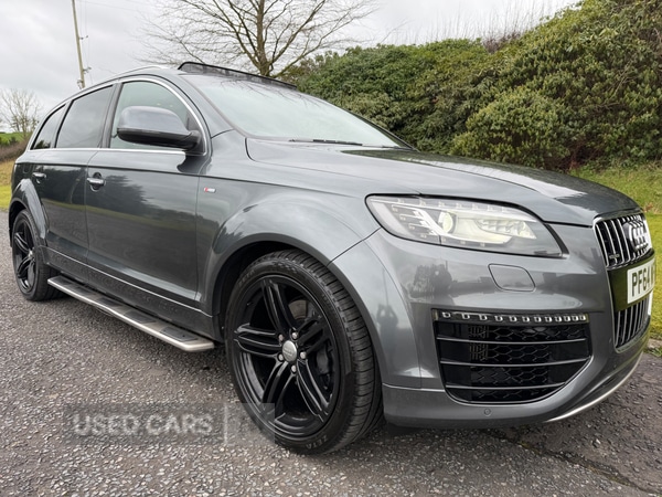 Banbridge1 Previous Owner, Finished In Executive Daytona Grey With Contrasting Luxury Full Black Verano Leather Interior And Alloy Inlays.109,000 Miles Backed Up With A Service History.This 2015 Audi Q7 3.0TDI SLine Sport Edition Quattro Executive 4X4 Is In Absolutely Stunning ConditionAnd Boasts A Huge Spec Which Includes 8 Speed Auto Sport Gear Box With Paddle Shift,Push Button Start,Bose Surround sound System, Cruise Control,Bluetooth Phone Preparation, Xenon Headlamps,Colour Screen Sat Nav, Reversing Camera,Side Steps,Remote Central Locking 2x Keys,Visual Display Front And Rear Park Distance Control, Electric Memory Heated Sports Seats,Panoramic Roof,Dual Climate Control,Audi Mmi System,MultiFunction Steering Wheel,Power Tail Gate, Rain Sensitive Wipers,Unmarked 21"Alloy Wheels With 4x Branded Tyres,And So Much More.Very Economical Returning 38+ MPG.Offering Hand Picked Main Dealer Part Exchanges.All our cars are fully HPI Clear for full peace of mind!You will receive Friendly Advice and Genuine Help Choosing a Car.We PROMISE a Realistic Valuation if you decide to Part Exchange.6 or 12 Months Warranty Available on Selected Vehicles.We have Competitive FINANCE PACKAGES With Most Credit / Debit Cards Accepted.Advert descriptions as accurate as possible some errors may still occur