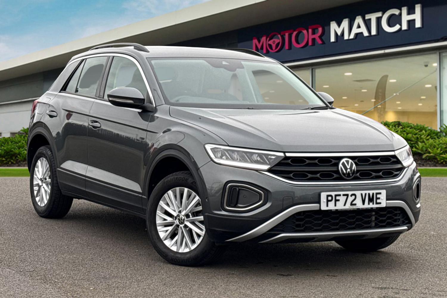 0 Previous Owners, Available now from Motor Match Chester with only one owner from new, serviced by Volkswagen at 9565 miles. This excellent Volkswagen TRoc Life comes finished in the gleaming Indium Grey metallic paint, which looks fantastic paired with the 16in Chester alloy wheels. At the front of the vehicle youll find the automatic LED headlights and rainsensing wipers, offering superb visibility. The TRoc also benefits from electrically adjustable, heated and powerfolding door mirrors. The interior offers plush cloth upholstery, with sports seats offering excellent support. Manual seat adjustment is provided, and Isofix mounting points can be found on the outer rear seats. The Volkswagen is plenty spacious throughout, offering plenty of legroom for passengers, and a roomy boot too. Dualzone climate control is also provided to keep all passengers comfortable. This Life model also boasts an amazing media system, providing access to DAB radio, Bluetooth interface and USB connectivity, so youve got plenty of choice when it comes to music. Youve also got the ability to connect smartphones to use Apple CarPlay and Android Auto to access your phones apps and maps on the go! This car is equipped with cruise control and speed limiter which come in handy for motorway drives, while the front and rear parking sensors alert you to any obstructions when reversing! This vehicle is compliant with Clean Air Zone (CAZ) or Ultra Low Emission Zone (ULEZ) regulations, meaning it produces low...