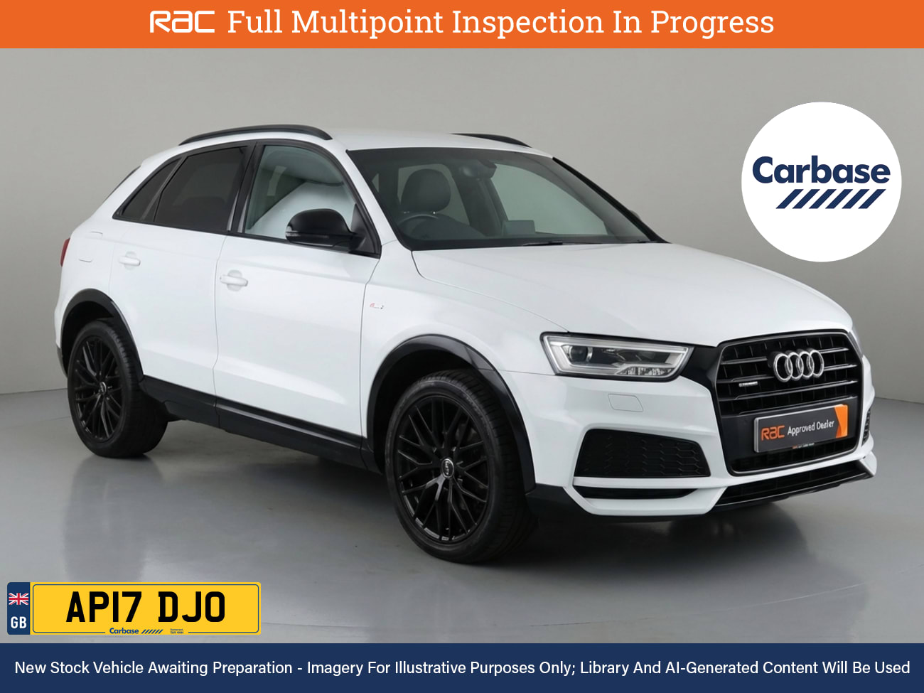 RAC MultiPoint Inspection and Verified Service History Strong, Sleek Coupe Looks With Illuminating Features, Experience The Q3s AllWeather Readiness With An InStore Test Drive. Fitted With Extras Including, Electrically Adjustable, Heated And Power Folding Door Mirrors With Auto Dimming Function And Finished In Glacier White Metallic Paint Standout Key Features Include Gps Satellite Navigation System, Boasting Intuitive Sat Nav Functionality For Seamless Journeys. As You Step Inside You Will Find A Variety Of Technologies, Including Front and Rear Radar Type Parking Sensors, Cruise Control, Rain Sensing Windscreen Wipers, BOSE Sound System. Keep Everyone Onboard Entertained Thanks To Features Such As Voice Control For Media Functions, Bluetooth Wireless SmartPhone Connectivity, DAB Digital Radio For A Myriad Of Stations To Suit Your Mood, CD Player With MP3 Compatibility. Relax In The Ultimate Comfort Thanks To DualZone Climate Control, Air Conditioning, Electrically Foldable Door Mirrors, Refrigerated Glove Box, Tinted Glass, Anti Dazzle Rear View Mirror, Isofix, Front And Rear Electric Windows, Rear Privacy Glass, Leather Covered Multifunction Steering Wheel. On The Exterior Youll Be Sure To Notice The Sports Suspension. Also Fitted With Engine Start/Stop Fuel Saving Technology, Electric Hill Holder, Tyre Pressure Monitoring System., Date Of First Registration May 2017. Drive Into A Low Emissions Zone With This Euro 6, ULEZ & CAZ Compliant Car Were an RAC App...