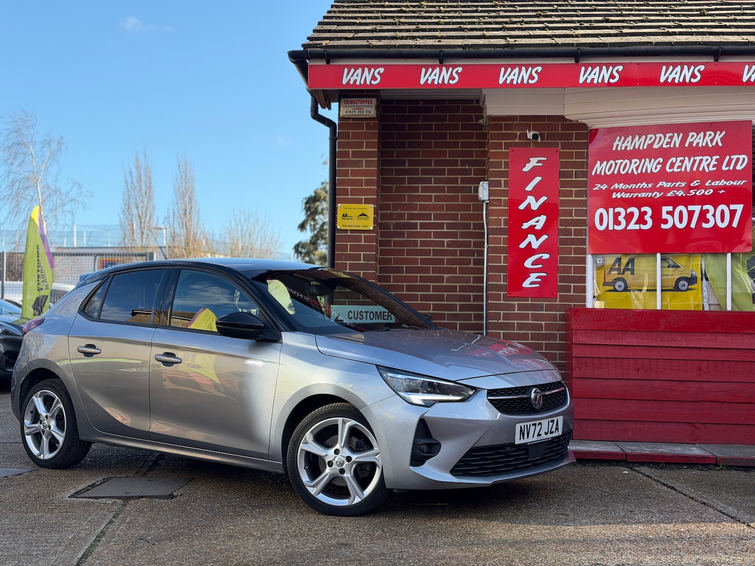 EastbourneInsurance Group 19, 0 Previous Owners, **24 MONTHS PARTS & LABOUR PEACE OF MIND NATIONAL WARRANTY INCLUDED IN THE PRICE**Hampden Park Motoring Centre is pleased to be offering this ULEZ compliant 2023 Vauxhall Corsa 1.2 Turbo GS Hatchback,for sale, with ONLY ONE OWNER FROM NEW and 25,400 miles. This car comes with FULL MAIN DEALER SERVICE HISTORY. The car will leave with an interim service, a new MOT and a PDI. Finished in Contrast grey with dark grey GScloth trim. **WHY BUYFROM US** **Established In 1980** **24 Month Warranty OnAll Cars Over £4500, &Those Not Covered By A Manufactures Warranty** **All Our Cars Are Hpi ClearSo You Can Buy WithConfidence** **Competitive FinanceRatesSubject To Status** **Multi Branches** **Open 7 Days a Week IncBank Holidays** **Monday Friday 8.30am to 6pm** **Saturday 9.00am to 5pm** **Sunday 10am to 4pm** **Bank holidays 10am to 4pm** For more pictures and a walk around videoplease go to https://www.hailshammotoringcentre.co.uk/ Please call to arrange viewing and a test drive on 01323507307. Here at Hampden Park Motoring Centre, we have up to50carson show, also at our Hailsham branch we have up to 50 further cars available for viewing, please call 01323 449900 for more info. For more information on our Corsa please see the benefits below as stated Features Include: , 17in alloy wheels black, black door mirrors, black lower side window mouldings, black roof and apillars, body colour door handles, body coloured front and rear bumpers, chrome griffin logo and bar, dark tinted rear side and tailgate windows, door mirrors electrically adjustableheated, electrically operated front and rear windows, high gloss black bpillars, locking wheel bolts for alloy wheels, sports front and rear body styling, 7in digital colour instrument cluster, automatic antidazzle rearview mirror, black headliner, door handles interior chrome effect, drivers seat 6way adjustable, electronic climate control, front centre armrest with storage, front passengers seat fourway adjustable, liquid palladium cloth inserts, liquid palladium facia with hot red accent, pedals sport alloy effect, rain sensitive windscreen wipers, rake and reach adjustable steering wheel, seats 6040 split folding rear seats, sports style front seats, steering wheel mounted controls for audiophonecruise control, steering wheel threespoke design leather covered flat bottom satin chromeeffect bezel, abs antilock braking system, airbag drivers,
