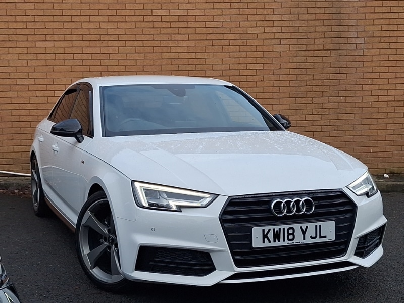 GlasgowInsurance Group 20, Android Auto, Apple CarPlay, LED daytime running lights, Audi drive select, Stop/start button, Voice control system, Rear diffuser in Twilight grey matt, Rain and light sensors, Headlight range control, 3 spoke flat bottom high multifunction leather steering wheel, Black styling pack A4/S4, Non Smokers pack, S line exterior styling pack A4 Saloon, Anti theft alarm, Keyless start, Thatcham category 1 alarm + immobiliser, Piano black finish inlay, Space saver spare wheel