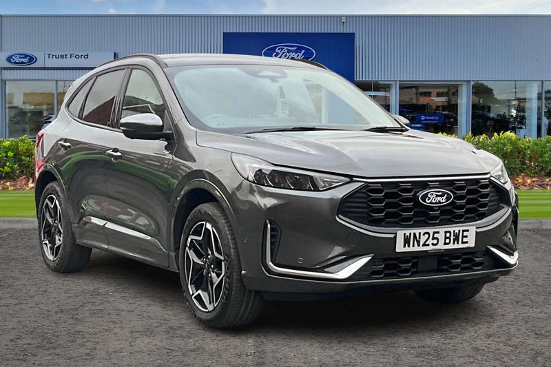 Insurance Group 26, 12.3 digital colour instrument cluster, 360 degree view camera, Clear exit assist, Cross traffic alert with active braking, eCall (emergency call), Ford easy fuel, Ford SYNC 4 Navigation with 13 touchscreen, DAB radio, emergency assistance, Andriod Auto/Apple CarPlay, 5G modem & Ford Pass connect, Front and rear parking sensors, Hands free power tailgate, Lane centering assist, Lane keeping aid with lane departure warning, Power assist steering, Selectable drive modes, Service interval indicator, Auto headlamps with high and low beam, Black roof rails, Body colour bumpers, Front LED fog lamps, Large rear spoiler, LED daytime running lights, LED rear lights, LED third brake light, Pop out door edge protectors, Power front/rear windows with global close, Power heated folding door mirrors with puddle lights, memory function and camera, Power opening panoramic roof, Quickclear heated windscreen, Rain sensing wipers, Rear privacy glass, Rear side wing doors, Rear wiper, STLine body styling kit, 2nd row sliding seats, Electronic automatic temperature control (EATC), Front and rear head restraints, Partial premium touch sensico upholstery, Rear centre head restraint, Single front passenger seat, Sports seats, 3x3 point rear seatbelts, Airbags front driver/passenger, front and rear curtain, Drivers knee airbag, Dynamic brake support, Electronic stability control (ESC) and ABS, Evasive steering assist, Ford MyKey Gen 2 safety system, Manual child proof rear door locks, Pre