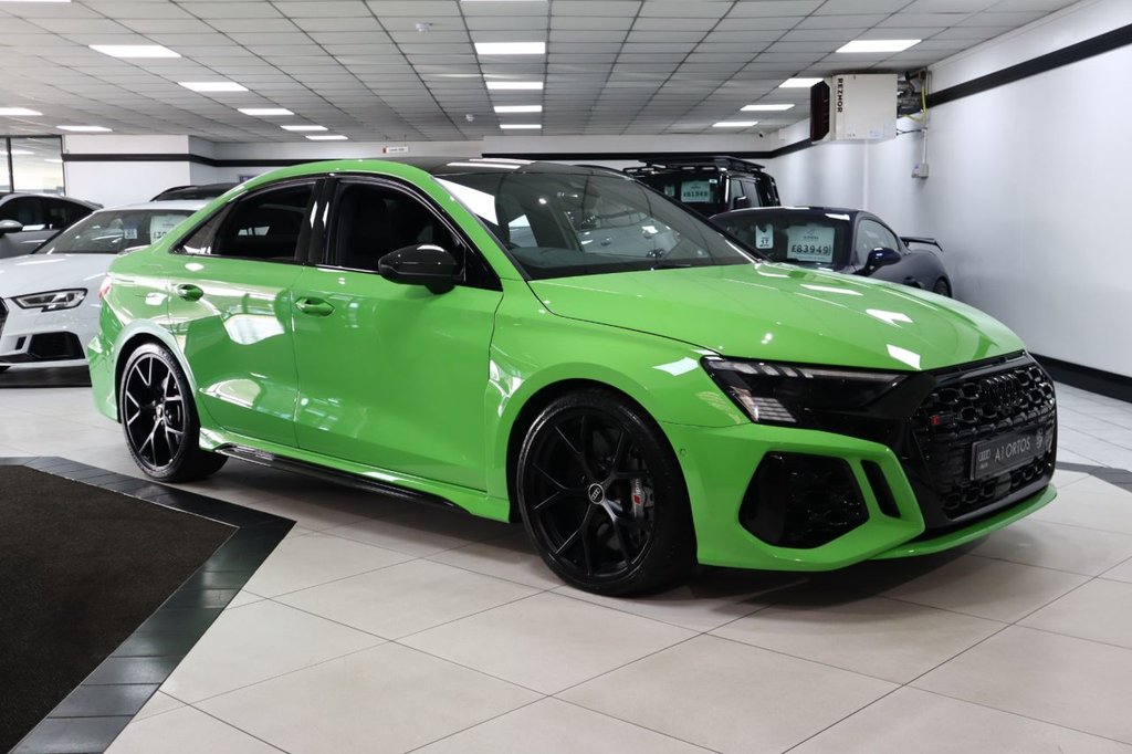 Insurance Group 37, 2 Previous Owners, INCREDIBLE RS3 SALOON JUST ARRIVED INTO STOCK! COVERING ONLY 21K MILES FROM NEW BACKED WITH A FULL AUDI MAIN DEALER SERVICE HISTORY! FITTED WITH FULL EXTERIOR PAINT PROTECTION FILM (PPF)! INCREDIBLE EXAMPLE! FINISHED IN THE STRIKING KYALAMI GREEN! SPEC INCLUDES RS DYNAMIC PACKAGE (CARBON CERAMIC BRAKES, HIGHER TOP SPEED UP TO 180MPH, RS SPORTS EXHAUST SYSTEM), COMFORT AND SOUND PACKAGE, BANG AND OLUFSEN PREMIUM AUDIO WITH 3D SOUND, DRIVER ASSISTANCE PACKAGE WITH ADAPTIVE CRUISE CONTROL, FULL BLACK FINE NAPPA LEATHER TRIMMED SEATS, MATRIX LED HEADLIGHTS, SPORTS CONTOUR LEATHER MULTI FUNCTION FLAT BOTTOM STEERING WHEEL, HEATED FRONT SEATS, CARBON FIBRE EXTERIOR SURROUNDS (MIRRORS, LOWER SIDE SKIRTS AND REAR LIP SPOILER), REAR VIEW CAMERA, BLACK STYLING PACKAGE PLUS, SWERVE ASSIST AND TURN ASSIST, AUDI VIRTUAL COCKPIT WITH RS DISPLAY, SMARTPHONE INTERFACE FOR ANDROID AUTO AND APPLE CARPLAY! VERY RARE, VERY SOUGHT AFTER INCREDIBLE EXAMPLE, EARLY VIEWING IS ESSENTIAL TO AVOID DISAPPOINTMENT, COMPREHENSIVE WARRANTY OPTIONS AVAILABLE , AA BREAKDOWN AVAILABLE STUNNING SHOWROOM CONDITION, MUST BE SEEN NOT TO BE MISSED, FIRST TO SEE WILL BUY, BE VERY QUICK THIS GEM WILL SOON GO!, VIEW MORE PICS ON OUR WEBSITE, PLEASE CALL FOR FULL SPEC, SIMPLY STUNNING! Every effort has been made to ensure the Vehicle details are correct, however errors may occur please check details with our Sales Team before visiting.Comfort and Sound Package, Driver Assistance Package, Kyalami Green, RS Dynamic Pack