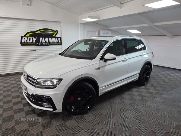 AntrimInsurance Group 18, 1 Previous Owner, A truly beautiful and practical 2016 Volkswagen Tiguan RLine ready for viewing at Roy Hanna Motors!2 Keys.2 Owners from new.MOT to 20th November 2026.A part service history with records at 28,374 miles.We will fully service this vehicle and carry out a pre delivery check for its new owner.*Brand new alloy wheels shown in pictures are an optional extra** We have a variety of wheels to chose from for each vehicle*Packed full of factory extras like Active digital information display. SatNav. Drive mode selector. Bluetooth Telephone preparation. Rear parking camera. 20" R Line alloy wheels. Adaptive cruise control. Tinted rear windows. CarNet AppConnect. Cornering front fog lights. Fatigue detection system. Lane assist. Speed sensitive power steering. Park assist with front and rear parking sensors and optical display. Isofix Preparation 2 Rear child seats. Rear tinted windows. Rear cupholder. Lowered sports suspension Climate and traction controls. CD/DAB Radio Player. Body Coloured Bumpers. Electric windows.*We Have Many Different Finance HP & PCP Deals Available To Suit Your Budget, You Can Drive Away In Your New Car With £0 Deposit & Pay Nothing For 2 Full Months!*For A Personalised Quote Give Us A PM / Text / Call Or Propose Yourself For Finance On Our Website*All Usual Dealer Facilities Available.*Credit/Debit Cards Accepted.*Trade Ins Welcome.*Every Vehicle Comes With Warranty.*Every Vehicle Comes With A Multi Point Health Check, Full Service & Put Out Fully Valeted/Polished.Roy Hanna Motors219 Lisnevenagh RoadAntrimBT412JT