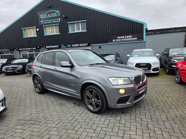 Newtownardsjust arrived 2012 Bmw X3 2.0d msport 181bhp Xdrive8 speed automatic 116,000 miles with service history hpi clear Finished in space grey with heated black leather interior isofixBluetooth air conditioning front and rear parking sensorscruise control Sun protection glassSold fully serviced, motd and valeted and 6 months warranty £6,995What's app walk round video availableElite Autos NI3 glenford road Newtownards Bt234au Tel. 0776173168602891 813377Finance available* no final paymentPart exchange welcomedebit card facilities