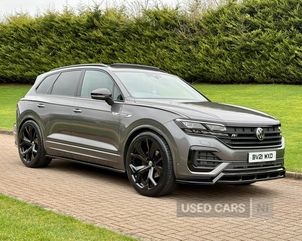 Magherafelt0 Previous Owners, March 2021 VW Touareg 3.0 TDI V6 4Motion Black Edition Auto in Silicon Grey. 1 Owner with Full Service History. MOT'd to March 2026.Loaded with spec including Tilt & Slide Panoramic Roof, Innovision Cockpit, LED Daytime Running Lights, Aero Styling Kit, Side Steps, Full R Embroidered Leather Interior, Heated Seats, Navigation System, Bluetooth, DAB Radio, Cruise Control, Central Armrests, Electric Boot, Black Pack etc.Fitted with Brand New 23" Alloys & Tyres (Optional Extra £1495)FINANCE AVAILABLE AT KEEN RATES!!Viewing by Appointment Only Please.