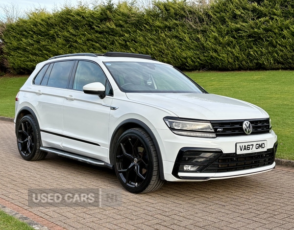 MagherafeltInsurance Group 17, February 2018 VW Tiguan RLine 2.0TDI 4Motion RLine Tech DSG in White. Full Service History. Mot'd to March 2027.Loaded with spec including Suede Heated Interior, Digital Dash, Navigation System, Panoramic Glass Roof, LED Daytime Running Lights, Touch Screen Media System, Bluetooth, Side Boards, Cruise Control, Armrest, Digital Radio, Parking Aid, LED Lights etc.Fitted with Brand New 21" Alloys & Tyres (Optional Extra £1295)FINANCE AVAILABLE AT KEEN RATES!!Viewing by Appointment Only Please.