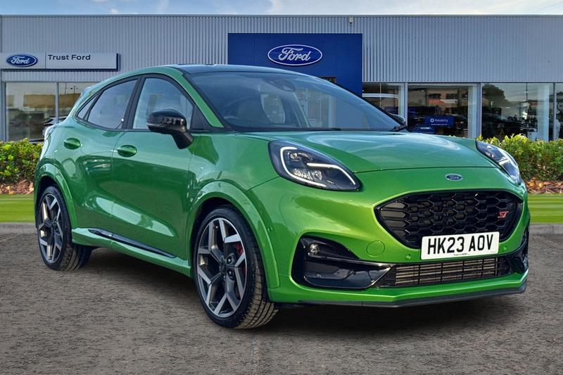 Insurance Group 22, Cruise control with Intelligent speed assist, Driver impairment monitor, Emergency call service, Ford easy fuel, Front and rear parking sensors, Full digital 12.3 instrument cluster, Lane keeping aid with lane departure warning, Power assist steering, Selectable drive modes (normal, sport, eco, track), Speed sign recognition, Automatic headlights with auto high beam, Automatic rain sensing wipers, Dual chrome exhaust, Fixed LED signature headlamps, Front fog lamps, LED daytime running lights, LED rear lamps, Power foldable heated door mirrors with puddle lamps and puma logo protection, Privacy glass to side rear windows and tailgate glass, Quickclear heated windscreen, Rear side wing doors, Rear wiper, ST scuff plates, Third brake light, Unique ST body styling kit including wing mirrors and Ford Performance embossed splitter, 3 seat bench in 2nd row, Alloy sports pedals, Centre console with armrest and stowage, Ford megabox extended bootspace, Ford Performance sensico partial premium leather upholstery with metal grey stitching, Front and rear floor mats, Front and rear head restraints, Manual 6 way driver seat adjust with lumbar adjustment, Manual 6 way passenger seat with lumbar seat adjustment, Single front passenger seat, ST flat bottomed steering wheel with metal grey stitching, ST logo projection, Unique ST gear shift knob, Wireless charging pad with electronic air temperature control (EATC), 3 rear seatbelts, Child safety lock, Electronic stability control (ESC) and
