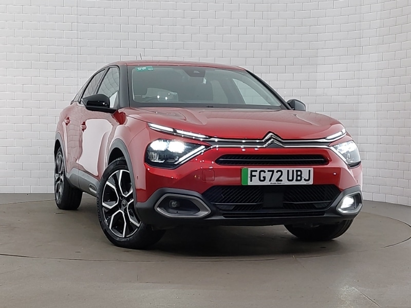 Bolton0 Previous Owners, Citroen connect nav with real time traffic and speedcam, Apple car play and Android auto, Citroen Hifi system with 1 speaker in dashboard centre, 4 woofers in doors, 2 tweeters in pillars and 1 subwoofer, 10" high resolution touchscreen user interface, controlling media, connectivity and vehicle settings, 5.5 inch backlit full TFT driver's instrument cluster with LED ambient lighting, Citroen connect box emergency and assistance system, Coffee Break Alert, Driver's headup display, Incrash braking, Speed limiter, Voice commands, Wireless smartphone charging, Bluetooth telephone and audio streaming, DAB Digital radio, Safety plus pack with highway driver assist C4/C4 X/eC4 X, Hype black interior ambience with Siena leather and leather effect textile seats pack C4 Shine plus/eseries, High level acoustic insulation pack C4/C4 X/eC4 X, Automatic headlights, LED daytime running lights in V signature, Rain sensing automatic front windscreen wipers, Dual zone automatic air conditioning, Electrically heated front seats, Heated steering wheel, 18" Diamondcut Crosslight alloy wheels with antitheft locking wheel nuts