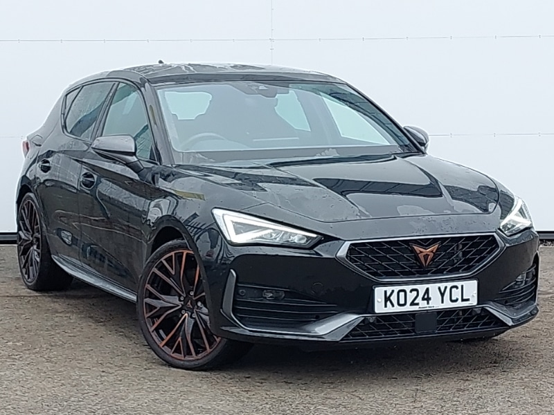0 Previous Owners, Full link smartphone integration with Mirror Link, wireless Apple CarPlay and wired Google Android Auto, Park assist (inc front/rear parking sensors), Rear view camera, 19" Performance satin black and copper alloy wheels with 91Y tyres, Media system plus with navigation pack Leon Cupra, Dynamic and comfort pack Leon Cupra, Design pack Cupra Leon, Panoramic sunroof, Wireless phone charger, Start/stop system with regenerative braking, Service interval indicator, Lockable tailgate, Lane assist, Front assist with forward collision warning braking reaction to vehicles, pedestrians and cyclists, Ecall, Digital cockpit, CUPRA drive profile selection with 4 modes (Comfort/Cupra/Sport/Individual), throttle response and gearshift mode, XDS electronic differential lock and dynamic traction support, Standard suspension, 3.6 kw Onboard charger, 16 amp mode 3 charging cable, 10 amp mode 2 charging cable, Auxiliary input socket, Auto dimming rear view mirror, Body colour door handles, Body coloured bumpers, Cupra sports bumpers, Dark tinted rear windows, Electric front/rear windows, Electrically adjustable, heated and folding door mirrors, LED front fog lamps with cornering function, LED headlights with dynamic turn signals, tail lights, rear fog lights with rear coast to coast lighting, Third brake light, Separate daytime running light with automatic headlight control and coming home feature, Rear wash/wipe, Rear side wing doors, Rear diffuser with twin exhaust pipe on each side with simulated exhausts, Rain sensing wipers, Single front passenger seat, PVC/Cloth upholstery with copper stitching + Cupra embossed logo on headrest, Luggage tiedown hooks, ISOFIX points in outer rear seats with top tether anchorage points, Interior wraparound lighting, Illuminated interior front door sills, Height/reach adjust steering wheel, Front seats manual lumbar adjustment, Front centre armrest, Front and rear reading lights X 4, Four x USB Type C ports (2 in front and 2 in rear), Folding boot cover, Dust/pollen filter, Driver/passenger manual seat height adjustment, Cupra sports pedals, CUPRA Leather flat bottomed, heated, perforated steering and gearshift paddles, Black headlining, Ambient lighting (glovebox, footwell, ambient lighting multicoloured), 60/40 split rear bench seat with armrest, 3 seat bench in 2nd row, 5 headrests, 12v power supply in centre console, Tyre pressure monitoring system, Tiredness recognition system, Seat belt reminder for front and rear seats,