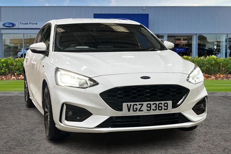 Insurance Group 13, 4.2 TFT coloured cluster, Bluetooth system, Digital clock, Ecall, Easy fuel capless refuelling system, Eco mode, Ford SYNC 3 navigation with 8 TFT touchscreen, DAB radio and app link Android auto/Apple carplay, Intelligent speed assist, Lane keeping system lane keeping alert and lane keeping aid, PAS, Selectable drive mode, Trip computer, Auto dimming rear view mirror, Auto headlamps (on/off), Automatic rain sensing wipers, Body colour large rear spoiler, Body coloured bumpers, Body coloured door handles, Body coloured electrically operated and heated door mirrors with side indicators, Electrically operated front and rear windows with one touch opening and closing, Front variable intermittent wipers with electric wash, Heated rear window, LED daytime running lamp, LED front fog lamps with cornering function, LED reflector headlamps, Polished twin tailpipe, Power folding door mirrors, Quickclear heated windscreen, Rear privacy glass, Rear side wing doors, STLine upper and lower grille with full body styling kit and wing badges, Tailgate wash/wipe, Third brake light, 3 seat bench in 2nd row, 3 spoke flat bottomed Sensico steering wheel with red stitching, Aluminium gear knob, Cloth upholstery, Dark headliner, Driver's lumbar support, Front floor mats, Height adjustable front headrests, Isofix child seat preparation, Manual air conditioning, Reach + rake adjustable steering column, Rear centre headrest, Single front passenger seat, 3x3 point rear seatbelts, ABS+Electronic
