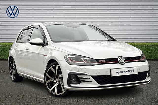 PortsmouthOutside mirror electr., DAB radio, Automatic climate control, Bluetooth, Brake assistant, Cruise control, LED daytime running lights, Electric windows, Electronic tailgate, Electronically retractable wing mirror, Heated front seats, Heated wing mirror, Keyless Start, Reversing camera, electronic sliding roof, USB, NEDC CO2 emission: 143.0 g/km, ABS, Active brake assist, Adaptive cruise control, 4x Airbags (front + side airbags), Alarm device, ESP, Fog lamp, Immobiliser, Multifunctional steering wheel, Differential lock, Front wheel drive, Traction control, Suede cushion, 5 seats, Ambient lighting, Centre arm rest, Divided back seats, ISOFIX Child seat fastener, Leather, Leather steering wheel, Sport seat, Righthand drive, Tinted windows, 5 doors, Speed limit: 154 mph Exterior Features, Rear tinted glass 90% light absorbing from B pillar backwards, Dynamic chassis control (DCC) Adaptive chassis control variable suspension settings sport, comfort and normal, Electric sliding/tilting panoramic glass sunroof with integrated roller blind, Interior Features, Vienna leather upholstery + perforated heated front sports seats with manually adjustable lumbar support, Wheels, 19" Brescia alloy wheel with anti theft wheel bolts, Paint Solid, Solid Pure white, Trim Leather, Vienna leather Black/Red with red piping and contrast stitching + heated front sports seats + lumbar support Exterior Features, Electric front windows, Electric rear windows, Heated rear windscreen, Rear window wash/wipe with intermittent wipe, Windscreen wipers/ intermittent wipe + 4 position delay, Antitramp function, Lowered sports suspension, Black front air intake and radiator grille with chrome insert, Body colour door handles, Body colour rear roof spoiler, Extended sill strips flared, Front and rear unique GTI badging in red, Fully galvanised body, GTI logo in red on front and back, GTI logo lettering on front wings on right and left, Honeycomb front air intake Black, Honeycomb radiator grille with red stripe, Rear window aerial, Reflectors in all doors, Shiny black aerofoil downside, Twin exhaust tailpipe, Uniquely shaped front/rear bumpers, 3DLED tinted rear light clusters with indicator sweep function, High level 3rd brake light incorporating LED Technology, LED daytime running lights incorporating red stripe, LED front fog lights, LED headlights with dynamic light assist, Rear fog lamp, Rear number plate lights incorporating LED technology, Safety, Antilock Braking System (ABS) with Hydraulic Brake Assist (HBA), Automatic post collision braking system, Electronic parking brake with auto hold, Electronic stability control (ESC) including Electronic differential lock (EDL) and ASR (Traction control) with deactivation via infotainment system, Front ventilated disc brakes and rear disc brakes, Larger diameter brake discs and GTI logo on red brake calipers, ACC Adaptive cruise control with front assist, forward collision warning, distance monitoring, city emergency brake and speed limiter, Driver alert system, Driving Mode Selection with four preset modes Eco, normal, sport or individual modes, Progressive steering, Rear view camera, Body colour door mirrors with integrated indicators, Electrically adjustable and heated door mirrors, Remote electrically foldable door mirrors, door mirror puddle lights and reverse activated kerbview adjustment on passengers door mirror, 3 rear three point seatbelts, Airbags Driver's and front passenger's, curtain airbag, Driver's knee, front side impact and passenger's airbag deactivation switch, Child locks on rear doors, Driver/Passenger optimised head restraints, Pre crash preventive occupant protection, Three point height adjustable front seatbelts with tensioners, Tyre pressure loss indicator, Interior Features, Front + rear carpet mats, Climate control 2 zone electronic air conditioning with automatic air recirculation and allergy filter, Dust/pollen filter, 12V socket in luggage compartment, 4 load lashing points in luggage compartment, Bag hook in luggage compartment x 2, Black decorative sleeve on gear handles, Black headlining, Black rear diffuser with chrome exhaust tailpipes in left and right, Black roof lining, Cooled glovebox, Front centre armrest with storage compartment and two rear air vents, Grab handles front x 2, rear x 2 with integrated coat hooks, Height and reach adjustable steering wheel, Illuminated door sills, Leather gear knob and handbrake grip, Load through provision with rear centre armrest and cupholders x2, Overhead storage box, Stainless steel pedals, Storage box in luggage compartment, Storage compartment in roof console with cover, Storage compartments in front doors, Storage compartments in rear doors, Stowable luggage compartment cover, Three spoke multifunction leather steering wheel with GTI logo and red stitching including gearknob gaiter, Variable boot floor, height adjustable and removable, Instrument lighting white adjustable
