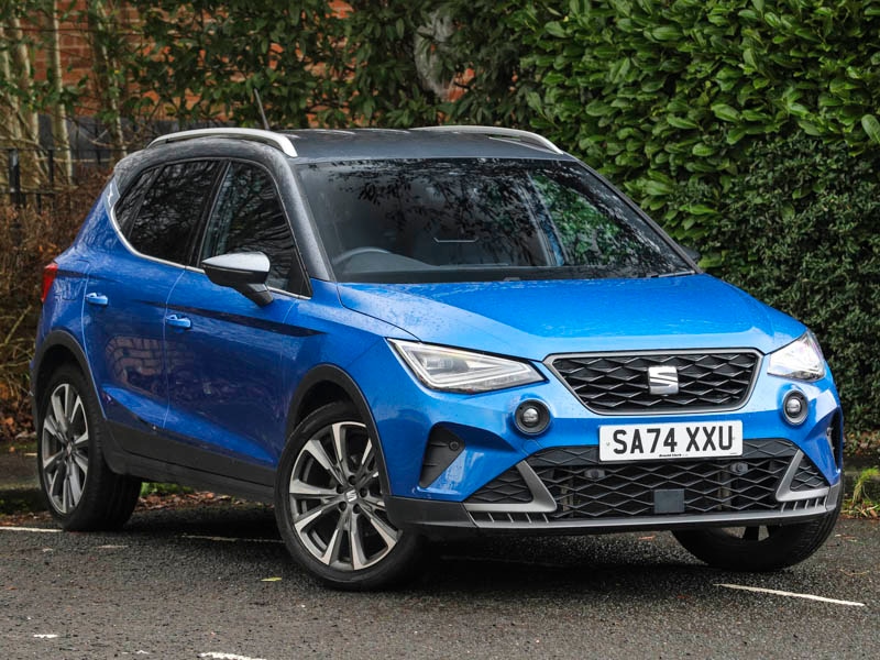 GlasgowInsurance Group 14, FULL LED automatic headlights with dynamic headlight range control, coming and leaving home, LED daytime running lights, 10" Digital cockpit, Digital clock, Full Link Smartphone Integration with Mirror Link, Apple Car Play, Google Android Auto with USB Type C cable for Apple and Android compatibility, Lane keeping system, Rear view camera, SEAT Drive profile Four different models normalsportecoindividual, steering response, throttle response, Wireless phone charger, 9.2" colour touchscreen with navigation system, voice control and USB port (type c), Bluetooth interface for hands free and audio streaming, Interior chrome pack Arona, 18" Performance Cosmo grey alloy wheels