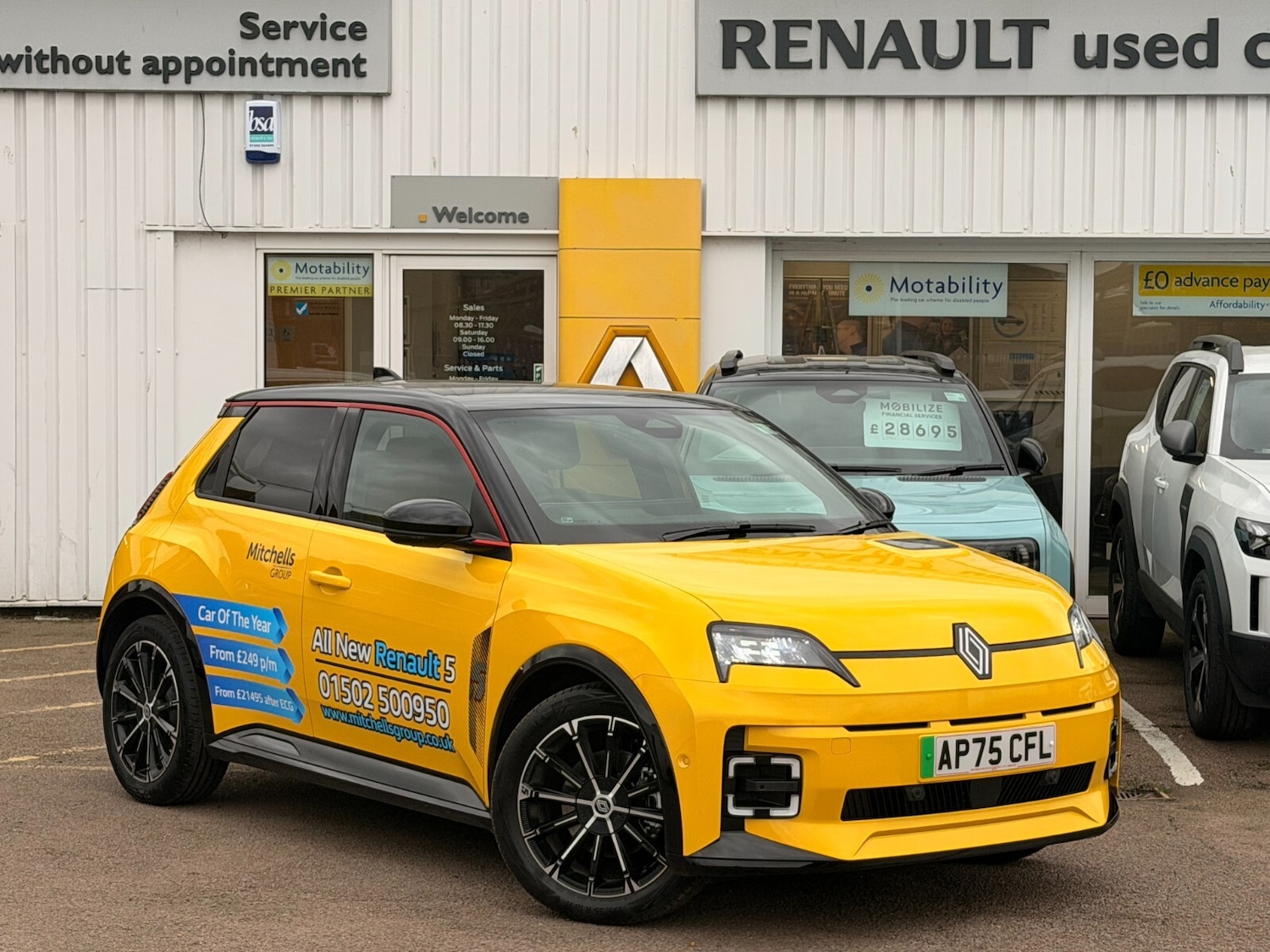 Great YarmouthInsurance Group 19, 0 Previous Owners, ..10.3'' digital driver information display, 2 front USBC ports, Active driver assist, Active lane keeping assist with front and rear sensor, Adaptive cruise control with Stop and Go, Blind spot warning, Bluetooth, Connected services including over the air updates, Driver attention alert system, eCall (emergency call), Engine start button, Exterior temperature display, Front safe stopping distance warning, Front, rear and side parking sensors, Intelligent speed assist with speed sign recognition and overspeed warning, Internet access, Lane centering assist, Lane departure warning system, Miles per hour configuration, Multisense: customisable driving modes (personalised, sport, eco, comfort), My safety switch: shortcut to personalise configuration of driving aids, Navigation system with build in google maps, OpenR link 10.1'' central touchscreen multimedia system: Google built in, DC charge preconditioning, PAS, Qrescue, Rear cross traffic alert, Rear view camera, Reno the official Renault avatar, Safety coach provide advice to the driver to improve safety score, Safety score assess ability to drive safely and help improve driving style, Self steering parking system (Handsfree parking), Service interval indicator, Speed alert, Speed limiter, Steering wheel mounted cruise control, Tailgate, Traffic sign recognition, Trip computer, Voice control for navigation system with built in google assistant, WiFi hotspot, Wireless phone charger, Wireless smartphone replication and integration via Apple carplay and Android auto, 5 charging indicator on bonnet [lights up w. welcome sequence + shows increments of 20%], AC 11kW + DC 80kW, Battery preconditioning for DC charging, Bidirectional functionality power to object [V2L], Fireman access hatch designed to flood the battery quickly if needed to contain and control battery fire, Home wallbox cable [mode 3, 6.5m], SD pyro switch disconnect the battery from highvoltage network to ensure safety as needed, Arkamys audio system, Digital radio, Steering wheel audio controls, 2x 3rd brake reversing light, Automatic headlight levelling, Automatic high / low beam, Automatic LED daytime running lights, Automatic LED front headlights with microoptics + french flag in the light, Automatic windscreen wipers with rain sensor and sensitivity setting, Black door mirrors, Body coloured bumpers, Electric adjustable/heated/auto folding door mirrors, Frameless electrochromic interior rear view mirror, Front and rear