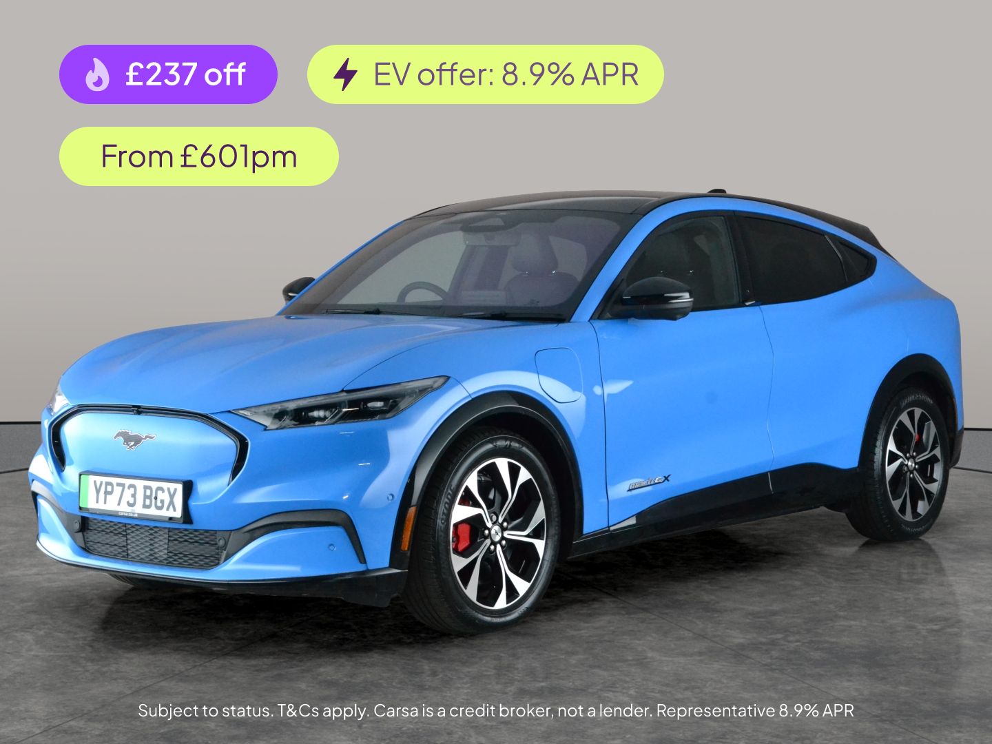 Gloucester0 Previous Owners, Experience the thrill of the Ford Mustang Mache SUV in striking blue, featuring luxurious perforated Sensico seats with red stitching for that extra touch of style. Stay comfortable with heated seats and a heated steering wheel, and drive with total confidence thanks to Adaptive Cruise Control, Blind Spot Assist, and Lane Departure Warning System. The Tech Pack Plus includes Ford SYNC, sat nav, a wireless charger, and dual zone digital climate control. Effortlessly access your Mache with keyless entry and park with ease using front and rear sensors. 1 service recorded, last serviced on 07/02/2026 at 19,233 miles. MOT to 09/02/2027. Visit our website for service history, online valuation, full vehicle specification plus multiple images. This vehicle is VAT qualifying. Any feature/option specified here is from 3rd party data. We cannot guarantee the accuracy of any specification supplied by a 3rd party. We recommend that you physically check the specification of the vehicle on site prior to purchase. This information does not form part of the buying contract. Terms & Conditions apply. We have over 2,000 cars available from our 10 national branches, check our website to see all our stock. Our Trustpilot rating is 4.4/5 with over 9,000 reviews.