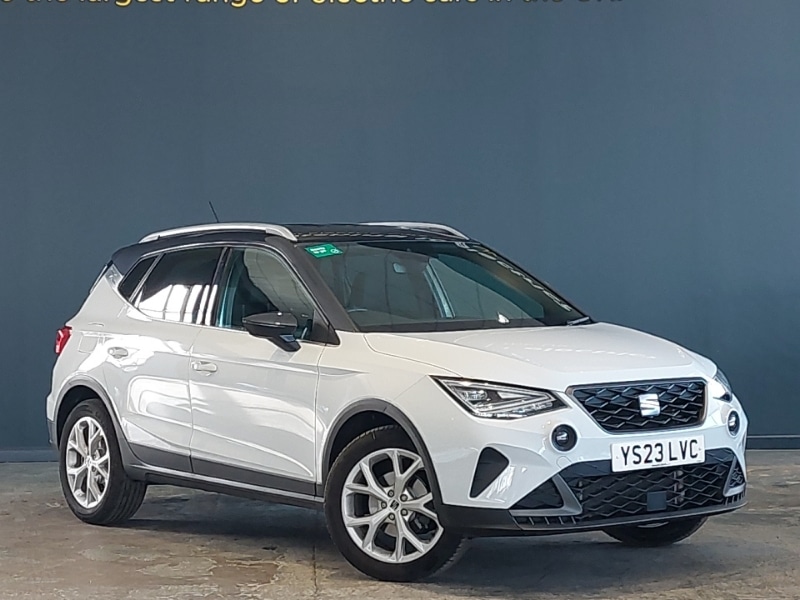 OldburyInsurance Group 12, Interior chrome pack Arona, 17" Dynamic alloy wheels, Wireless phone charger, Trip computer, SEAT Drive profile Four different models normalsportecoindividual, steering response, throttle response, Seat connect with safety, service, remote and online, RPM counter, Rear parking sensor, Outside temperature display, Low fuel warning light, Lane keeping system, Full Link Smartphone Integration with Mirror Link, Apple Car Play, Google Android Auto with USB Type C cable for Apple and Android compatibility, Ecall, Electric speed sensitive power steering, 8" Digital cockpit, Steering wheel mounted audio controls, DAB digital radio and AM/FM radio, Bluetooth interface for hands free and audio streaming, 9.2" colour touchscreen with navigation system, voice control and USB port (type c), Windshield wiper with intermittent control and potentiometer, Visible VIN plate, Twin exhaust pipe styling hidden exhaust pipe, Third brake light, Roof colour door mirrors, Rear window wash/wipe, Rear side wing doors, Rear spoiler, LED rear tail lights and licence plate lights, FULL LED automatic headlights with dynamic headlight range control, coming and leaving home, LED daytime running lights, Chrome roof rails and window surrounds, 60/40 split folding rear seat, 3 seat bench in 2nd row, Gear shift indicator, Height adjustable front seats, Height/reach adjustable steering column, Illuminated boot, ISOFIX points in outer rear seats with top tether anchorage points, Driver and front passenger airbags with front passenger airbag de activation, front side and curtain airbags, Child locks on rear doors, ABS, Hill hold control, Tow away protection, Locking wheel bolts, Alarm with backup horn, Titan black dashboard