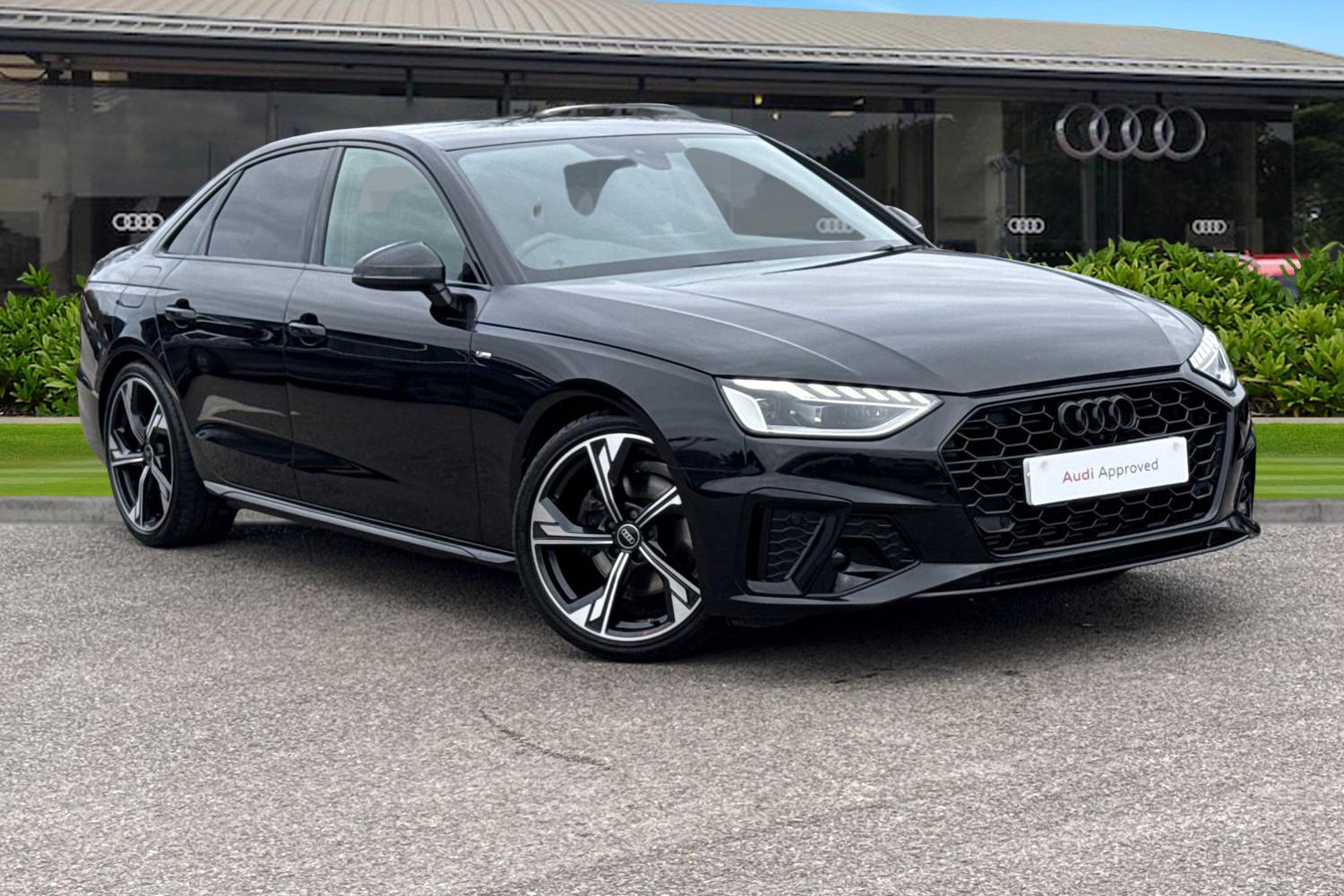 CreweInsurance Group 26, 1 Previous Owner, Check out this Audi Approved A4 Black Edition 35 TFSI in Mythos Black with its 19" 5arm flag style Audi sport alloy wheels which look stunning out on the roads. The LED headlights with LED rear lights create that strong visibility in all weather conditions. The deluxe 3zone electronic climate control can be adjusted to your prefered climate on all journeys. This A4 has some brilliant optional extras, such as the Comfort and Sound Pack which does include the Bang and Olufsen premium sound system with 3D sound, for that excellent sound experience. It also includes the 360 degree camera which maximises vision and assists greatly whilst maneuvering those tighter spaces. Other fantastic features include the Bluetooth Interface which provides seamless connectivity on all journeys. The heated front seats are perfect for those cooler mornings. The Ambient Lighting Package Plus, enhances the cabins ambience and improves visibility of controls at night. Planning and following routes is a breeze, with the MMI Navigation Plus with MMI Touch. ISOFIX child seat mounts are fitted to the front passenger and outer rear seats of this A4, making it the perfect family vehicle. The multimedia interface allows the driver and front passenger to access a range of different media, such as Apple Carplay and Android Auto, allowing you to use apps like Spotify, Google Maps, Apple Music and other apps also. The Audi drive select feature lets you choose your prefered drive mode on any journey, for...
