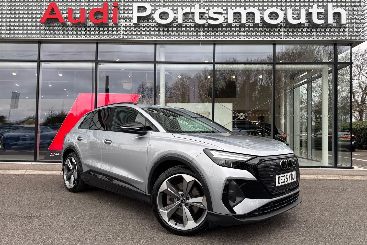 Portsmouth0 Previous Owners, Franchise Approved, SATELLITE NAVIGATION, AMBIENT LIGHTING PACK PLUS, BLACK STYLING PACK PLUS, SPORT SUSPENSION, REAR PARKING CAMERA, MULTI FUNCTION STEERING WHEEL, HILL HOLD ASSIST, CRUISE CONTROL, AUDI VIRTUAL COCKPIT, LANE DEPARTURE WARNING, APPLE CARPLAY, ANDROID AUTO, DAB RADIO, TINTED WINDOWS PRIVACY GLASS, FRONT AND REAR PARKING SENSORS, SPLIT FOLDING REAR SEATS, LIGHT & RAIN SENSOR, AUTO DIMMING REAR VIEW MIRROR, SELECTABLE DRIVING MODES, PUSH BUTTON START, FLORET SILVER METALLIC WITH LEATHER UPHOLSTERY, 21'' 5 ARM ROTOR DIAMOND CUT ALLOY WHEELS, DUAL ZONE CLIMATE CONTROL, LUMBAR SUPPORT, LED HEADLIGHTS WITH DYNAMIC REAR INDICATORS, VOICE ACTIVATED CONTROLS AND MUCH MORE.This car comes with the balance of the manufacturers warranty until 29/4/2028.Portsmouth Audi are delighted to offer this Audi Q4 in Floret silver over Twin Leather and has completed just 10294 miles., We are proud to be part of the Harwoods group, a family run business established in 1931. With four Approved Audi retailers within our group, we have access to over 400 vehicles. If this isn't the right car for you, please contact us and we will find it. Our group stock has spec to include Sunroof, Leather, Heated Seats, Apple Car Play, Heated Steering Wheel, Reverse Camera, Rear Entertainment, Towbar, 360degree camera, Comfort & Sound Pack, Tech Pack, Panoramic Sun Roof, Tow Bar, Black Pack, Air Suspension, Apple Carplay, Adaptive Cruise, Massage Seats, Refrigerator, AWD, Technology Pack, Head up Display, Vorsprung, Technik, Black Edition, SLine, S Line, Edition 1, TFSI, Quattro, Sportback, LWB. Other colour options including Black, Blue, Green, Silver, White, Red, Grey, Yellow, Orange. Interior options of Ebony, Black, Ivory, White, Tan, Cream, Oyster, & Euro 6 ULEZ compliant drive trains.