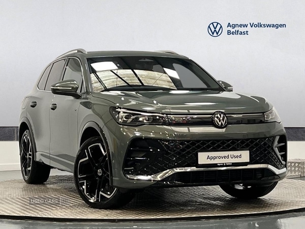 Belfast*** From Monday 23 February to Monday 9 March £1,000 deposit contribution available on used vehicles up to 12months old when financed through VWFS PCP *** Agnew Volkswagen Belfast are delighted to offer this stunning 2026 Volkswagen Tiguan RLine 1.5 eTSI 150 PS 7Speed DSG 5 Door in CipressinoGreen Metallic with 20" 'York', black, diamondturned Alloy Wheels IDA Voice Assistant and Wireless phone charger Driver Assist Pack with Comfort drive Travel Assist, Lane keeping system Lane Assist and Emergency Assist Illuminated Lightline between Headlamps and Illuminated Door Handle Recesses Rear privacy glass Interior ambient lighting Heated steering wheel Sports front seats with seat heating and massage function "Discover Media" Navigation with Wireless AppConnect for Apple CarPlay and Android Auto 3 Zone climate control Parking sensors front and rear and Park Assist Plus Rear view camera Dynamic road sign display Lane change system Side Assist Rear Traffic Alert and exit warning system