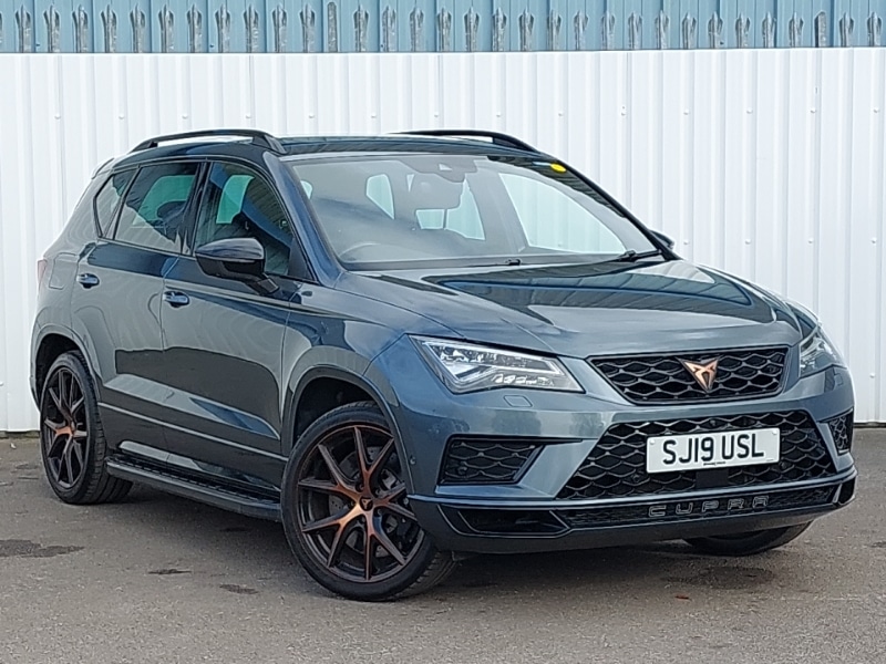 ElginInsurance Group 33, Top view camera, Navigation system (incl. media system plus) Dynamic route guidance feature with 3D Map display and 3D emblematic buildings, 8.0" colour touchscreen with proximity sensor, Full Link Smartphone Integration with Mirror Link, Apple Car Play, Google Android Auto, Cruise control, Electric tailgate release, Front assist city emergency braking and pedestrian protection, Lane assist, Park assist system with steering assist, Progressive power assisted steering, Rear cross traffic alert, Rear view camera, Self parking functionality (includes front and rear parking sensors), Wireless Smartphone charger, XDS electronic differential lock, CUPRA sport suspension, 2 additional USB ports in rear with storage net, 10 GB hard disk, Steering wheel mounted audio/phone controls, SEAT USB media cable, DAB digital audio broadcast, Beats audio system, Auxin socket, 2x SD card slot, 2 USB ports, Black roof rails, Automatic headlight adjustment, LED daytime running lights, Full LED headlights, Door mirrors with welcome CUPRA light silhouette, Dark tinted rear windows, 60/40 split folding rear seat, Child seat ISOFIX attachment with rear outer seats includes top tether, Alcantara upholstery + sports seats, Steering wheel gearshift paddles, Sports leather steering wheel + gearshift, Height adjustable passenger seat, Height adjustable driver's seat, Gear shift indicator, Dual zone climate control, Ambient spot lighting and front footwell illumination, Convenience pack Ateca, Brembo brakes, Hill hold control, Tiredness recognition system, Keyless entry and go, 19" Copper alloy wheels