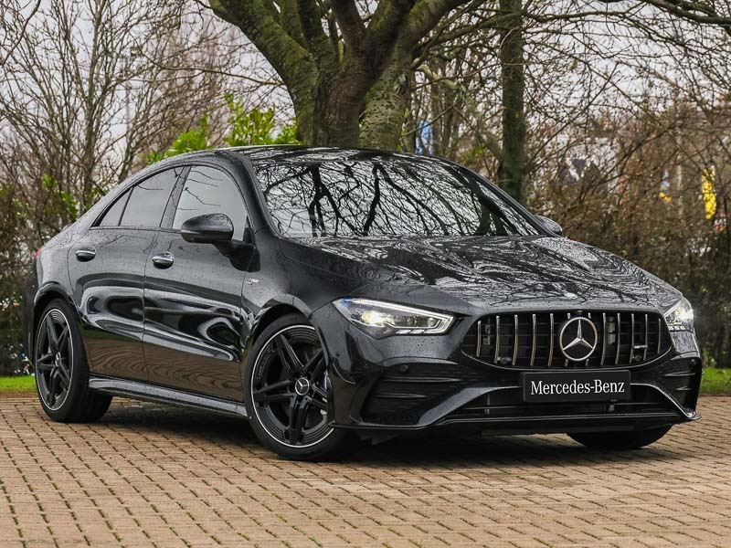 Brand new unregistered car, 2 years free servicing worth £960 included, MercedesAMG, 360 degree parking camera, Head up Display, Wireless charging in the front centre console, Burmester surround sound system (710W) with dolby atmos, speakers 1 central, 1 woofer, 1 tweeter, 1 subwoofer with 60W, 2 in C pillar, Smartphone integration with Apple CarPlay and Android auto, AMG DYNAMIC SELECT with drive modes(Slippery, Comfort, Sport, Sport+, Individual and Race) incl drift mode via steering wheel shift paddles+Race Start, AMG speed sensitive power steering with two sets of steering characteristics, Mercedes me connect including emergency call system, accident recovery, breakdown and maintenance management, Traffic sign assist, 4MATIC permanent four wheel drive, AMG performance 4MATIC+ with torque control distribution, AMG emblem on the front instead of the "MercedesBenz" laurel wreath badge, AMG Ride Control suspension, AMG Front apron with flics as air deflector elements on the outer air intakes, 10.25 inch Instrument display with digital cockpit, AMG Rear apron with specific diffuser look with four vertical fins and two round chrome plated tailpipe trim elements with a diameter of 90 mm, 10.25 inch touchscreen central media display, AMG Sports exhaust system with two round tailpipes measuring 90 mm in diameter attached in rear apron, Electric panoramic sunroof with automatic tilt and convenience closing fuinctions, rain sensor auto closing and electronic roller sunblind, AMG Performance steering wheel in nappa leather, Artico manmade leather/Microcut microfibre upholstery, Brushed stainless steel sports pedals with rubber studs, Interior lighting 64 colour Ambient lighting, Aerodynamics pack CLA, AMG Night package CLA 35/45, Keyless go comfort pack CLA, Light and sight pack CLA, Seat comfort pack CLA, Mirror pack with Self dimming rear view mirror CLA, AMG high performance brake system with red painted brake callipers and black AMG lettering at the front, ventilated and perforated brake discs, Electric parking brake, Guard 360 deg vehicle protection tow away protection with visual, acoustic warning, interior monitoring, preinstallation for parking damage, Light aluminium with longitudinal grain interior trim, 19" AMG 5 twin spoke light alloy wheels painted in matt black with high sheen rim flange