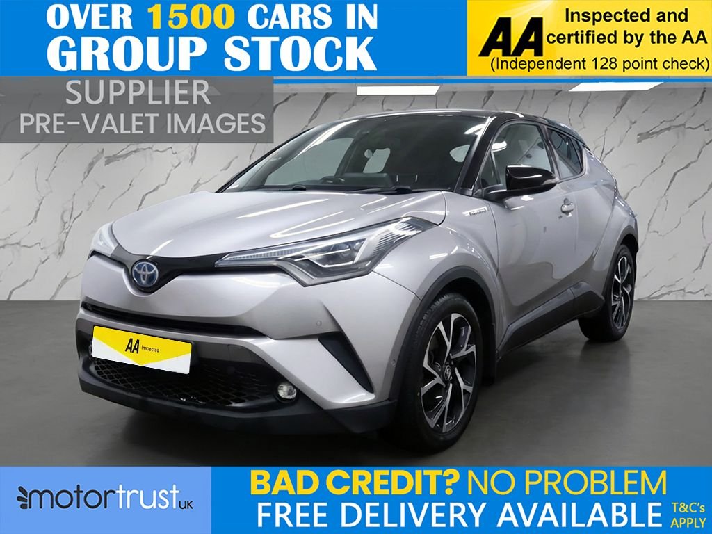 PrestonInsurance Group 14, 1 Previous Owner, This 2018 Toyota CHR VVTh Dynamic boasts a clear vehicle history and an MOT valid until December 2026, offering peace of mind for its next owner. This stylish model features a 1.8L Petrol Hybrid engine, meeting Euro 6 emission standards. Inside, youll find a DualZone Automatic Air Conditioning system for personalised comfort, along with Heated Driver and Front Passenger Seats. The Dynamic trim also includes the convenient Parking Pack, which incorporates Parking Assistance with front and rear sensors, as well as Intelligent Park Assist (IPA) to make manoeuvring effortless. Auto headlights further enhance the driving experience. The Toyota CHR VVTh Dynamic stands out with its impressive fuel economy, achieving an excellent 61 miles per gallon, which indicates it is more economical than many other vehicles in its class. Furthermore, its low CO2 emissions and low insurance group highlight its cost effectiveness for everyday use, making it a sensible choice for drivers seeking efficiency and affordability. Part Exchange Welcome. All Majors Cards Accepted. We Have Finance Available. A Wide Range of Warranties. We Also Offer Low Cost, Nationwide Delivery Available From £1.50 a Mile. **Every endeavour is made to ensure specifications and descriptions are correct. Due to model changes specification may vary. Phone for details. MPG figures shown are government official figures.**.Leather Black, Metal Stream, 18in Alloy Wheels Matt Black Dynamic, 3Spoke Leather Steering Wheel with Multimedia Switches, 4.2in Colour TFT Screen for MultiInformation Display, ABS Anti Lock Braking System, Adjustable Speed Limiter ASL, Audio and Telephone Switches on Steering Wheel, Auto Headlights, Automatic Headlight Levelling, BA Brake Assist, Bitone Black Roof, Black Diffuser, Black Roof Lining, Black and BodyColoured Rear Bumper, Blind Spot Monitor BSM, Bluetooth Connectivity, BodyColoured Door Mirrors and Handles, BodyColoured Front Bumper, Boot Door Release with Push Button, Boot Lamp, Child Safety Locks on Rear Doors, DAB Digital Radio, Driver and Front Passenger Personal Lights, Driver and Front Passenger Whiplash Injury Lessening WIL Seats, DualZone Automatic Air Conditioning, Electrically Assisted Power Steering EPS, Electronic Parking Brake, Follow Me Home Headlights, Front Cup Holders, Front Fog Lights LED, Front LED Light Guide, Front Passenger Airbag OnOff Switch, Front and Rear Power Windows with Auto UpDown and AntiJam Protection, Glovebox with Internal Light, HAC Hill Start Assist Control, Hard Tonneau Cover, Heated Driver and Front Passenger Seat, High Mounted Rear Brake Light LED, ISOFIX Fixing Points, Illuminated Entry System, Immobiliser, Intrusion Alarm, LED Daytime Running Lights, LED Headlights with Sequential LED Indicators, LED Rear Brake Lights, Leather Effect Padded Armrest on Front Console Box, Leather Gear Shift, Light Blue Ambient Lighting on Front Doors, Motion Sensor Alarm, Parking Pack, Parking Sensors and Intelligent Park Assist IPA, Power Adjustable Lumbar Support on Driver Seat, Power Door Locks, PowerAdjustable Door Mirrors, Puddle Lights on Door Mirrors, Rain Sensing Wipers, Rear Cross Traffic Alert RCTA, Rear Lights LED, Rear Privacy Glass, Reversing Camera, Road Sign Assist, Satin Chrome Rings on Analogue Speedometer, Seat Belt Reminder Front and Rear, Silver Deco Line on Dashboard, Speakers x6, Supplemental Restraint System SRS Airbags 7 Airbags, TPMS Tyre Pressure Monitoring System, Tech Pack, Toyota Safety Sense, Toyota Touch 2 Multimedia System with 7in Display, Toyota Touch 2 with Go Navigation, Traction Control TRC, Trailer Sway Control TSC, USB and Aux In Connectors and 12V Front Outlet, VSC Vehicle Stability Control, Voice Recognition