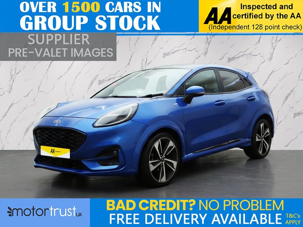 PrestonInsurance Group 16, 1 Previous Owner, This 2020 Ford Puma STLine X First Edition Plus offers excellent peace of mind with its MOT valid until July 2026. This stylish compact SUV is equipped with a responsive 1.0 litre petrol engine and meets Euro 6 emissions standards. Inside, youll find convenient features such as wireless phone charging and an openable panorama roof, perfect for enjoying the journey. For enhanced driving and parking, this model includes fixed LED headlamps, rear parking sensors, and a comprehensive driver assistance pack featuring blind spot assistance, adaptive cruise control, front and rear parking sensors, and a rear camera. Experience impressive efficiency with this Ford Puma, achieving a highlight of 50 miles per gallon, which indicates it is more economical than many similar vehicles. It also boasts low CO2 emissions, contributing to a more environmentally conscious drive. Performance is equally engaging, with acceleration from 0 to 60 miles per hour in just 8.9 seconds, demonstrating its spirited nature compared to other cars in its class. Part Exchange Welcome. All Majors Cards Accepted. We Have Finance Available. A Wide Range of Warranties. We Also Offer Low Cost, Nationwide Delivery Available From £1.50 a Mile. **Every endeavour is made to ensure specifications and descriptions are correct. Due to model changes specification may vary. Phone for details. MPG figures shown are government official figures.**.19in Alloy Wheels 5Spoke Matt Black Machined Finish, ABS Antilock Braking System, Acoustic Laminated Windscreen, Active Grille Shutter, Alloy Sports Pedals, Automatic Headlights with RainSensing Wipers and Auto High Beam, B&O Premium Audio System and Ford SYNC 3 Navigation, CarbonLook Interior Deco Spears, Centre Console with Armrest Stowage, Courtesy Lights Ambient LED Courtesy Lighting Single Colour, Cruise Control Lane Keeping Aid and Lane Departure Warning, Driver Assistance Pack, Driver and Passenger Seat Lumbar and Height Adjustment, ESC Electronic Stability Control and Hill Start Assist, Electric Windows Front and Rear, Electronic Air Temperature Control EATC, Fixed LED Headlamps, Floor Mats Front and Rear, Ford Easy Fuel System, Ford MegaBox Extended Bootspace, Front Bumper Unique STLine Sport Design Body Colour, Front Fog Lights with Cornering lights and LED Rear Lamps, Full Digital 12.3in Instrument Cluster, Headliner Deluxe, Instrument Panel High Level, Locking Wheel Nuts, Lower Bodyside Moulding Body Colour, Panorama Roof Openable, Post Collision Braking, Power Liftgate, Power Steering, PowerFoldable Heated Door Mirrors with Puddle Lamps, PreCollision Assist with Autonomous Emergency Braking and PedestrianCyclist Detection, Privacy Glass, Projector Headlamps with LED Daytime Running Lights, Puma Badge, Quickclear Heated Windscreen, Rear Bumper Body Colour Diffuser, Rear Parking Sensors, Rear Seats 2Way Head Restraint UpDown, Rear Seats Second Row 6040 Folding Seats, Restrain Device Pack, STLine Badge, STLine Bodykit with Large Rear Spoiler and Sports Suspension, STLine FlatBottomed Sensico Steering Wheel Leather Handbrake and Aluminium Gear Knob, STLine X First Edition Plus Pack, Selectable Driving Modes Normal Eco Sport Slippery and Trail, Speed Limiter, Thatcham Alarm, TripFuel Computer, Tyre Pressure Monitoring System TPMS, Tyre Repair Kit, Wireless Charging