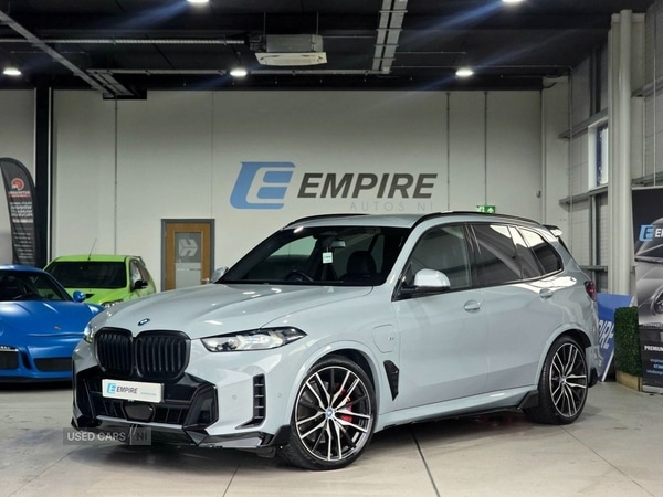 Aghalee2 Previous Owners, 2023 (Nov) BMW X5 xDrive50e M Sport Auto xDrive Brooklyn Grey 28,000 Miles Huge SpecFinished in Brooklyn Grey Metallic (£785 option) with Black Sensafin interior, this November 2023 registered X5 xDrive50e M Sport presents in exceptional, likenew condition and comes with a Full BMW Service History and the balance of BMW Manufacturer Warranty until 02/11/2026.This is the facelift LCI model featuring BMW's latest plugin hybrid technology, combining a 3.0litre TwinPower Turbo straightsix petrol engine with an upgraded electric motor producing a combined 483bhp.It delivers serious performance (062mph in 4.8 seconds) while offering up to 67 miles electric range (WLTP) and a claimed combined economy of up to 313mpg (WLTP, when fully charged).Factory Options (Over £7,500 Worth)22" M Sport BiColour Alloy Wheels Style 742 (£1,950)M Sport Pro Package (£2,100)Electric Folding Towbar (£1,150)Sun Protection Glass (£450)Flexible Charger Mode 2 (£350)Brooklyn Grey Metallic Paint (£785)It also benefits from a Full Gloss Black M Sport Styling Kit and professionally smoked/tinted front and rear headlights, giving the car real road presence.Specification Highlights8Speed Steptronic Automatic GearboxxDrive AllWheel DriveBMW Curved Display (12.3" Digital Cockpit + 14.9" Control Screen)Heated & Fully Electric Front SeatsMassive PanoramicStyle Infotainment LayoutFront & Rear Parking SensorsAdvanced Driver Assistance SystemsPremium Interior Ambient LightingDimensions & PracticalityA proper fullsize executive SUV:Length: 4,935mmWidth: 2,004mm (2,218mm including mirrors)Height: 1,765mmBoot Capacity: 500 litres (seats up)Spacious, commanding and extremely refined.Service & Warranty? 28,000 miles? Full BMW Service History? BMW Manufacturer Warranty remaining until November 2026? Balance of BMW Hybrid Battery WarrantyThis is a very highspecification example of the new generation X5 plugin hybrid and represents a significant saving compared to current list price.Part exchange welcome. Finance packages available. Nationwide delivery possible.Enquire today to arrange viewing or reserve