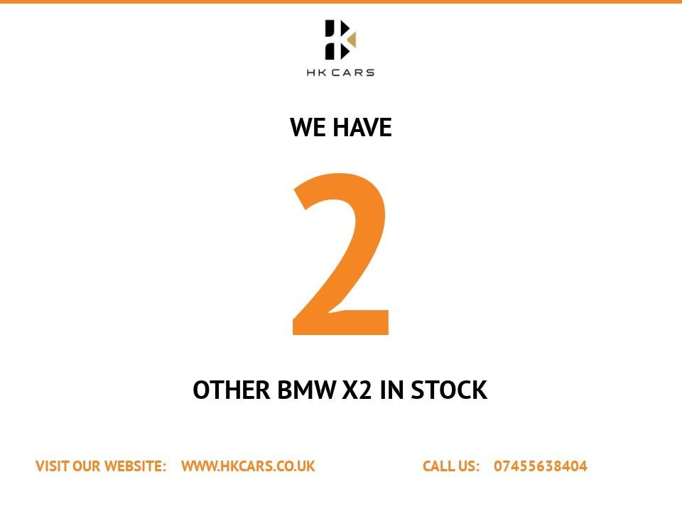 Bolton1 Previous Owner, This 2019 BMW X2 20i M Sport offers a compelling blend of sporty design and efficient performance. As a Euro 6 compliant vehicle, it benefits from low CO2 emissions, making it a more environmentally conscious choice. The M Sport trim enhances its dynamic appeal, while the 2.0 litre petrol engine provides a responsive driving experience. Experience brisk acceleration with a 060mph time of just 7.7 seconds, demonstrating its spirited performance. This impressive acceleration, combined with its low CO2 emissions, sets this BMW X2 apart from many other vehicles in its class, offering a more engaging and efficient drive..12V Power Socket in Centre Console Front with Blanking Plug, 19in Alloy Wheels M Light Double Spoke 715M with Run Flat Tyres, 402040 Split Folding Rear Seats with Two Tilt Positions for Backrest, Active Guard, Aero Curtain, Air Conditioning Automatic with TwoZone Control, Airbags, Alarm System Thatcham Category 1 with Remote Control and Engine Immobiliser EWS IV, Anti Roll Bars Front and Rear, Armrest Front Free Standing and can be Fixed in Five Positions, Automatic Tailgate Operation, Automatically Dimming Rear View Mirror, Battery Safety Cut Off, Black Sapphire, Bluetooth Hands Free with USB Audio Interface, BMW Badge on Bonnet Electric Bootlid with Integrated Electric Bootlid C Pillars Both Sides, BMW ConnectedDrive, BMW ConnectedDrive Online Services, BMW Emergency Call, BMW Navigation, BMW Professional Radio with Single CD Player with MP3 Playback Compatibility, BMW TeleServices, Brake Energy Regeneration, Brake Pad Wear Indicator Front and Rear, Bumper System Front and Rear Replaceable Deformation Elements for Impacts Up to 9mph, Central Locking Switch Doors Fuel Filler Cap Luggage Compartment, Check Control Warning System for Monitoring of Lights and DoorLuggage Compartment Open Warning, Child Proof Locking System Rear Doors, Child Seat ISOFIX Attachment for the Two Outer Rear Seats and Front Passenger Seat with Anchorage Points, Condition Based Service, Contrast Stitching on Centre Console Mid Section of Dashboard to Match Upholstery Seam, Crash Sensor, Cruise Control with Brake Function, Cup Holders Two in Front Centre Console Two in Rear, DAB Digital Radio, Dash Top Finished in Black with Decorative Stitching Line on Upper Section, Direction Indicator Lights Clear Lenses, Direction Indicator Side Lights Integrated in Exterior Mirrors LED, Door Sill Finishers M Designation Front, Drive Performance Control ECO PRO Comfort Sport Sport Plus Modes, Drive Performance Control with ECO PRO Comfort and Sport Modes, DSC Dynamic Stability Control Plus, Dynamic Brake Lights, EDLC Electronic Differential Lock Control, Electric Windows Front and Rear with OpenClose Fingertip Control AntiTrap Facility and Rear Window Child Lock, Electrically Operated Parking Brake with Automatic Drive Release, Engine Designation on Tailgate Right, Exhaust Tailpipe 90mm Chrome Twin Round Left and Right Split, Extended Storage, Exterior Mirrors Heated Electrically Adjustable, Exterior Parts in Body Co