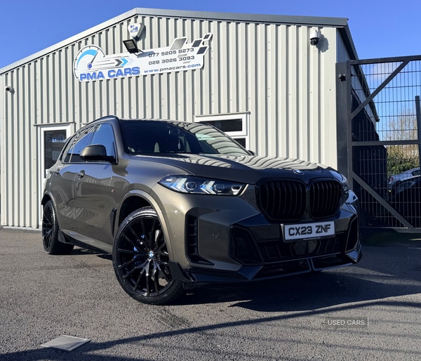 Newry0 Previous Owners, 2023 BMW X5 3.0d M Sport Auto LCI282 Bhp Automatic xDriveGreat Finance packages availableOnly 38,000 MilesManhattan Green with Black leather interiorNew 22" Alloy wheels are optional extraM Performance kitReverse cameraRear privacy glassLED daytime running lightsXenon headlightsLed taillightsLed front fog lightsSatellite navigation systemParking sensorsM Sport brakesBlack quilted leatherHeated seatsMemory seatsMassaging front seatsHeated and cooling cup holdersElectric windowsElectric mirrorsRemote central lockingKeyless entryKeyless startExcellent Condition throughoutINSTANT INHOUSE FINANCE Drive away todayAll Finance packages can be adjusted to best suit your budgetLow deposit options availableCredit and debit cards accepted£56500077520582730776370514202830263093