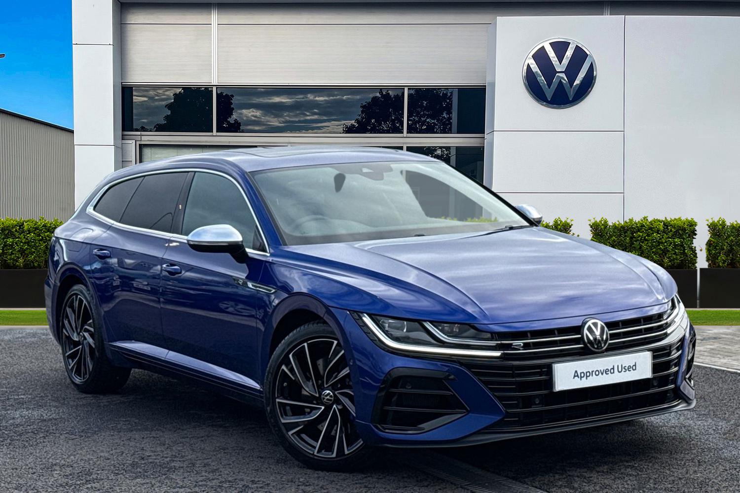 1 Previous Owner, Striking, powerful, and effortlessly elegant, the Volkswagen Arteon Shooting Brake 2.0 TSI R 4MOTION is a rare blend of performance car attitude and premium grandtouring practicality. Finished in exclusive Lapiz Blue Premium Metallic, this R model makes an immediate statement, perfectly paired with 19" Adelaide black diamondturned alloy wheels that hint at the performance beneath its sculpted bodywork. Inside, the Arteon delivers a truly premium driving environment. The cabin is trimmed in Rbranded Nappa leather in Carbon Style, with sculpted sports seats that combine comfort and support in equal measure. The drivers seat offers 14way adjustment with memory, power lumbar support, and a massage function, ensuring long journeys are as relaxing as they are engaging. Integrated head restraints, ambient lighting touches, and highquality finishes reinforce the Arteons executivelevel feel. Technology is seamlessly woven throughout. The Discover Media navigation system with streaming and internet keeps you connected via the builtin eSIM, while dynamic road sign display and intuitive controls make every journey effortless. A tilting and sliding sunroof brings extra light into the cabin, enhancing the airy, spacious feel that makes the Shooting Brake body style so appealing. Driving confidence comes as standard, supported by the Assistance Plus Pack. Features such as Area View cameras, Park Assist, Side Assist with rear crosstraffic alert, and Proactive Passenger Protecti...