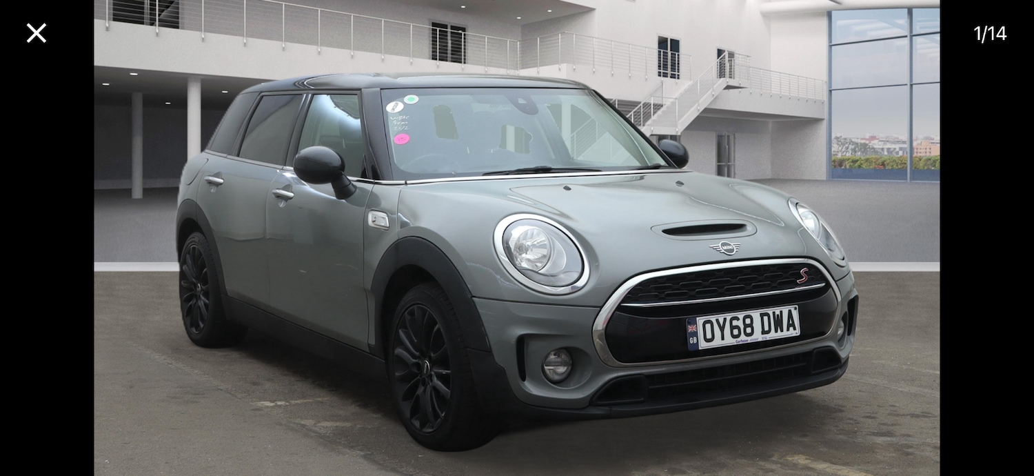 Bristol1 Previous Owner, Great value Clubman S sat nav Bluetooth cruise control service history This 2018 Mini Clubman 2.0 Cooper GPF S Estate with a mileage of 95000 miles is a reliable and efficient choice for those in need of a spacious vehicle. Powered by a Petrol engine and a manual transmission, this 5door estate comes with 5 seats, making it perfect for families or those who require extra space. With an MOT expiry date of 27/01/2027 and ULEZ compliance, this Mini offers both peace of mind and flexibility for city driving. In addition to its practicality, the car comes with desirable features including 17in Alloy Wheels, Darkened Rear Glass, and Roof and Mirror Caps in Black. The Moonwalk Grey exterior is paired with Double Stripe Cloth interior in Carbon Black, presenting a sleek and stylish look for any driver.