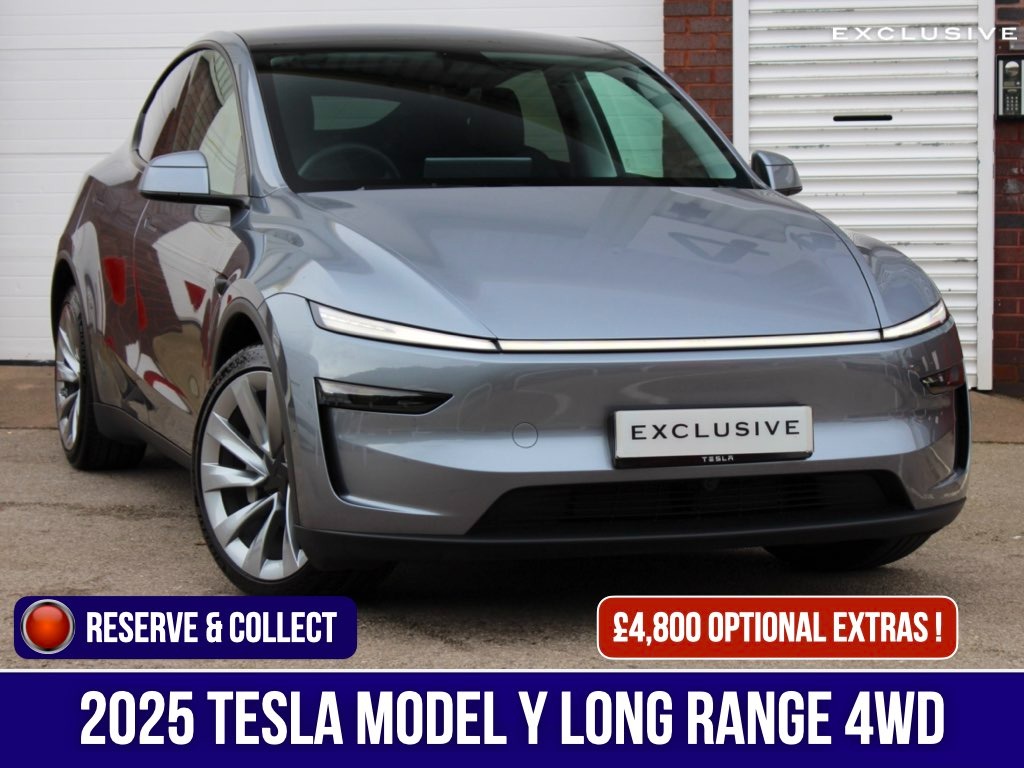 0 Previous Owners, Full Franchise Service History, We are delighted to present this low mileage, 1 owner, Tesla Model Y Long Range AWD Juniper (new shape) benefitting from £4,800 worth of optional extras such as: the upgraded metallic Quicksilver paintwork (£2,600) and 20" Helix 2 Alloys (£2,200) ... with a list price nearly £56,790, there is significant savings from new! | This vehicle features an excellent specification including 20" alloys, satellite navigation, 360 surround camera, heated and cooled seats, panoramic roof, premium connectivity, autopilot, configurable ambient lighting, Grok AI assistance, and much more | TESLA WARRANTY UNTIL 06/2029 AND TESLA BATTERY WARRANTY UNTIL 06/2034 |Say hello to the Tesla Model Y, which should appeal to buyers looking for extra SUV practicality, with the capability of achieving c.391 miles WLTP driving range on a full charge and ability to achieve a staggering 060mph in just 4.6 seconds. | The Tesla Model Y Long Range AWD Juniper offers significant improvements in ride comfort, refinement, and interior quality over the previous model, with better suspension, reduced noise, and enhanced features like reclining rear seats, making it a strong contender in the EV SUV market. It blends typical Tesla performance and efficiency with more mature comfort, making it a compelling family EV |With a practical and reliable range, fast charging capability, plenty of space and userfriendly onboard technology, the Model Y will appeal to buyers who need to take care of the family or work basics, but who also want the curb appeal and badge kudos that Tesla provides. We think that owning this car is akin to owning an Apple product, simple yet brilliant in both form and function and seldom out of date thanks to its over the air updates. Yep. Instead of having to go to a dealer or service centre to get your car updated |*Other features and upgrades can be added from Tesla such as:Full self driving Enhanced AutopilotTow bar