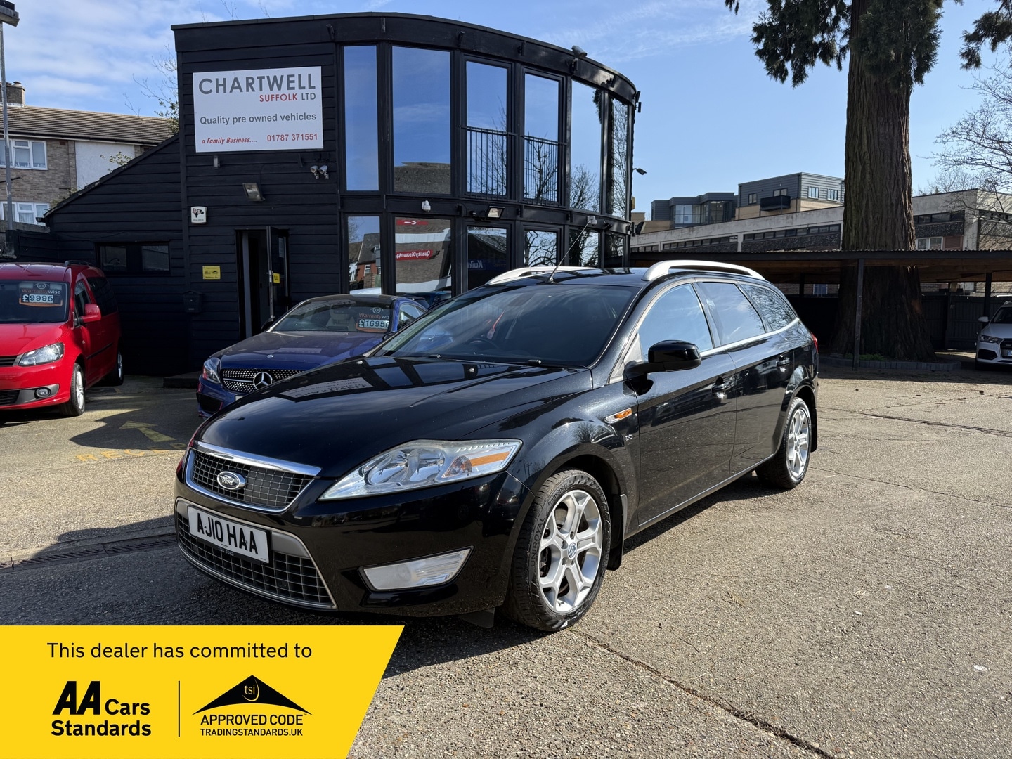SudburyFull Service History, Chartwell's are pleased to offer this Ford Mondeo Titanium Estate for sale. The car comes with a good service history including a total of 10 recorded stamps in the book. The last service was on 29/04/2025 at 124,901 miles. A new service will be included in the sales price. The all important cambelt and water pump change was done on the 28/03/2017 at 61,191 miles. The current MOT runs until 29/09/2026 . Drives superb. Being an automatic estate car in this price range offers someone real value for money. Sure to go fast. High spec includes the Metallic paint, 18" Alloys, Privacy glass, Auto lights, Cloth seats, Electric height adjustment, Front + Rear parking sensors, Steering wheel controls, cruise control, Remote locking, Bluetooth, DAB Radio CD USB AUX , Dual climate control, Air conditioning, Electric windows, Electric heated mirrors, and much much more. We have the full book pack with a stamped service book and 2 remote locking keys. The car is HPI clear with the printout available. We are an approved AA dealer. All our cars come with free 12 months AA breakdown cover. Driveaway insurance is now offered through the AA. , Our cars (not commercial) come with a 3month/3000 miles warranty as standard unless explicitly sold as a trade sale. We do offer extended warranties through WarrantyWise for 6 months 2year terms. For more information please call.